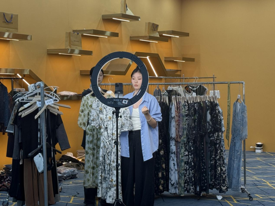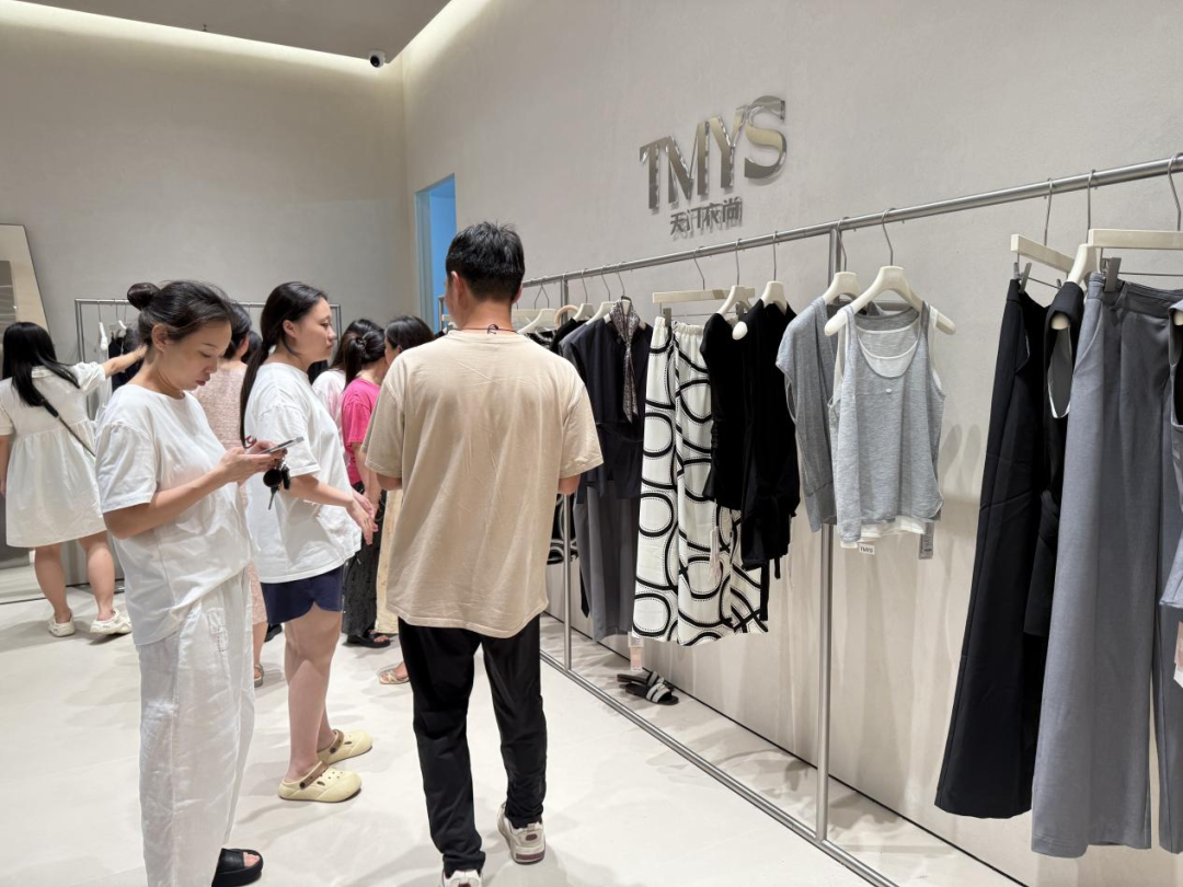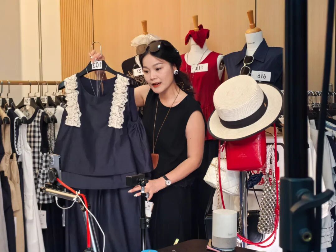 6月28日,北湖大道边的“天门衣尚”品牌馆正式开馆。在500平方米的展示空间里,一楼是都市优雅的女装,二楼是青春靓丽的直播爆款,完美融合线上潮流与线下体验。
