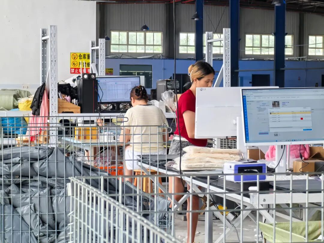 位于白马服装电商基地的悦姿服饰,同样是从广州迁回的服装企业。创始人刘建勇带着跨境电商经验返乡后,企业从最初的十几人团队发展到如今的两千多人规模,年销售收入突破3亿元,成了省级头部服装跨境电商供应链企业。