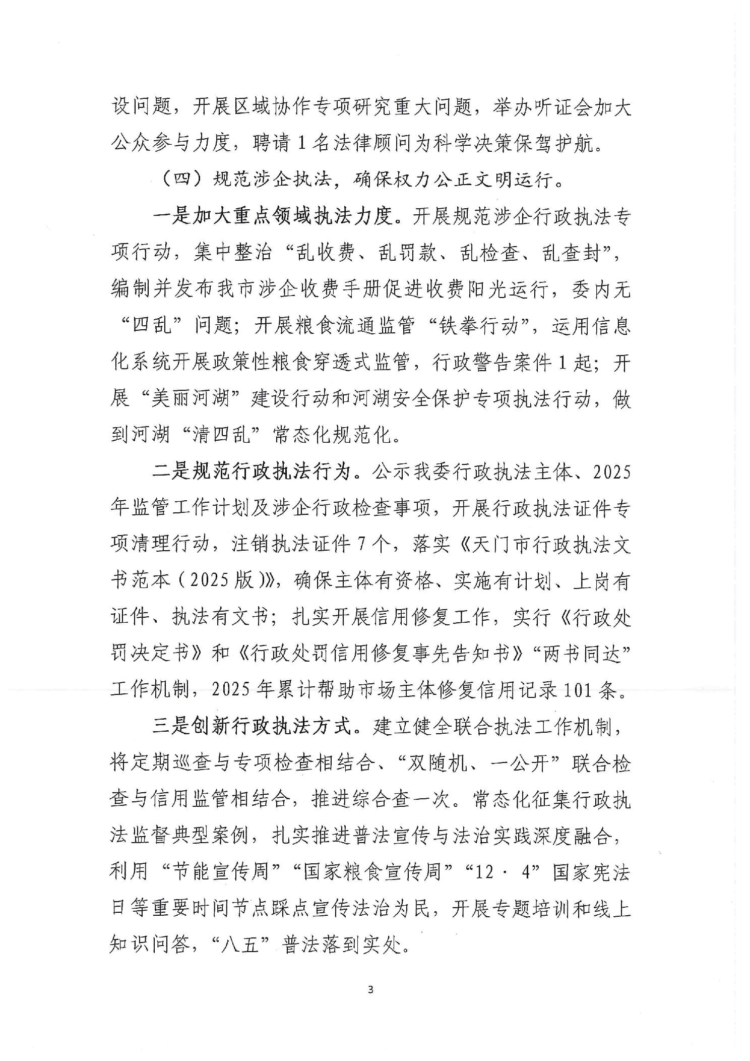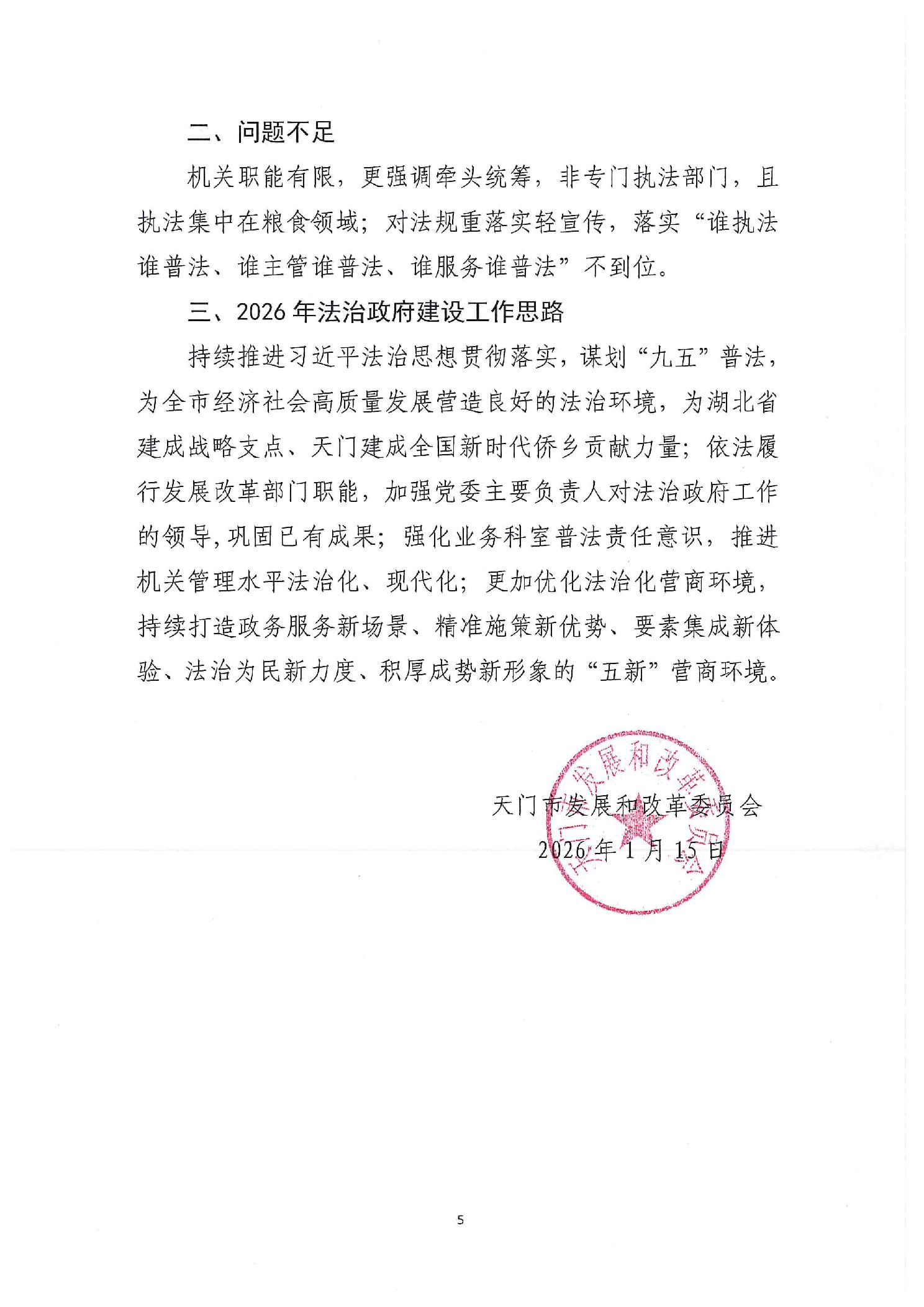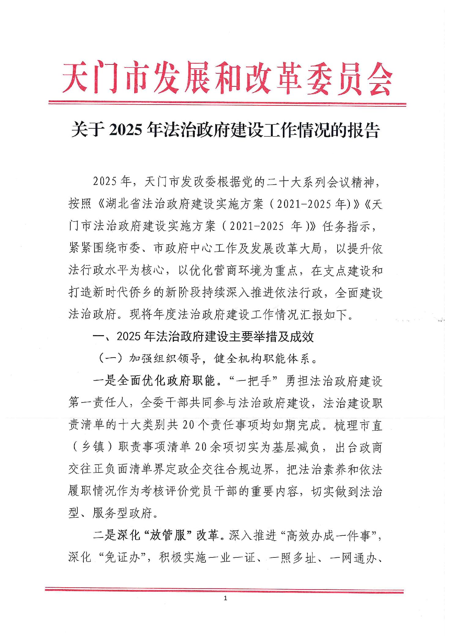 天门市发改委2025年法治政府建设工作情况的报告