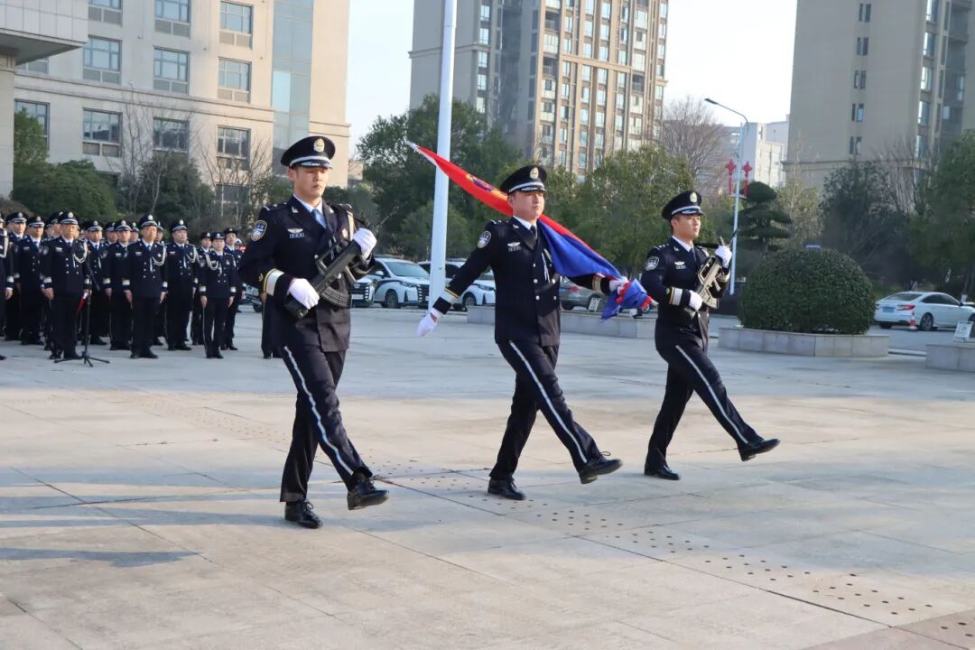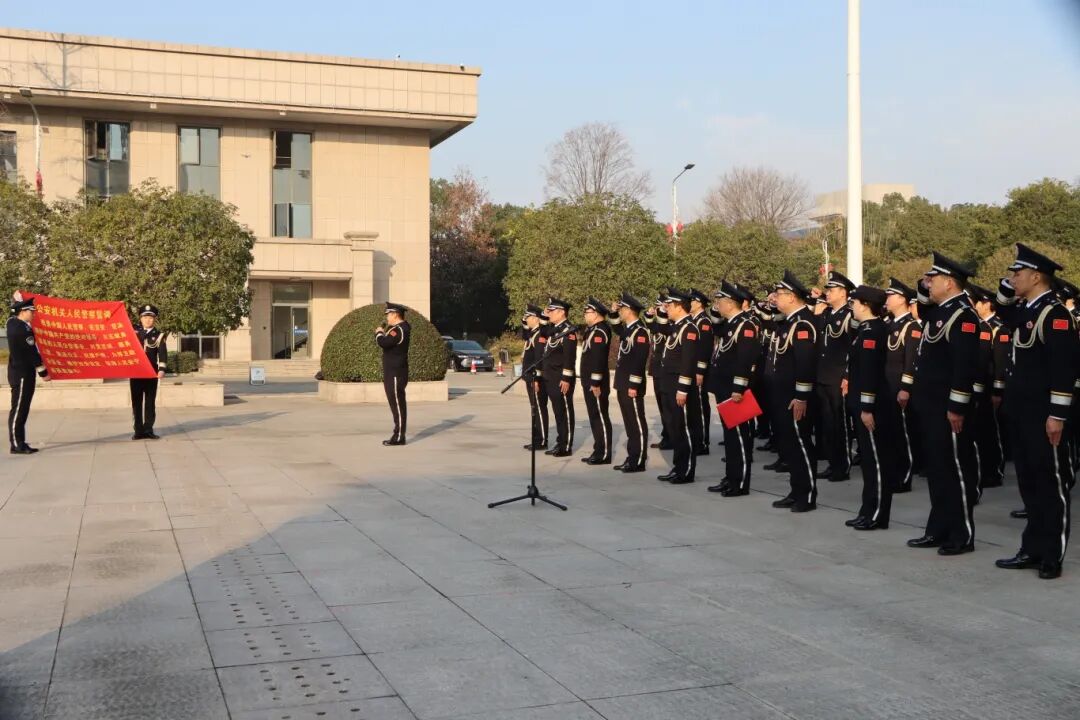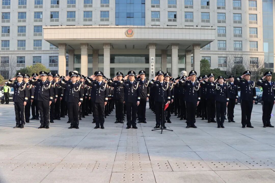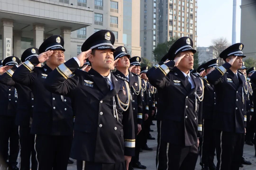 上午9时整,朝阳破云而出,洒满天门公安大院。全体民警身着警礼服,精神抖擞、列队整齐,以公安队伍特有的忠诚与坚毅,静候仪式开始。