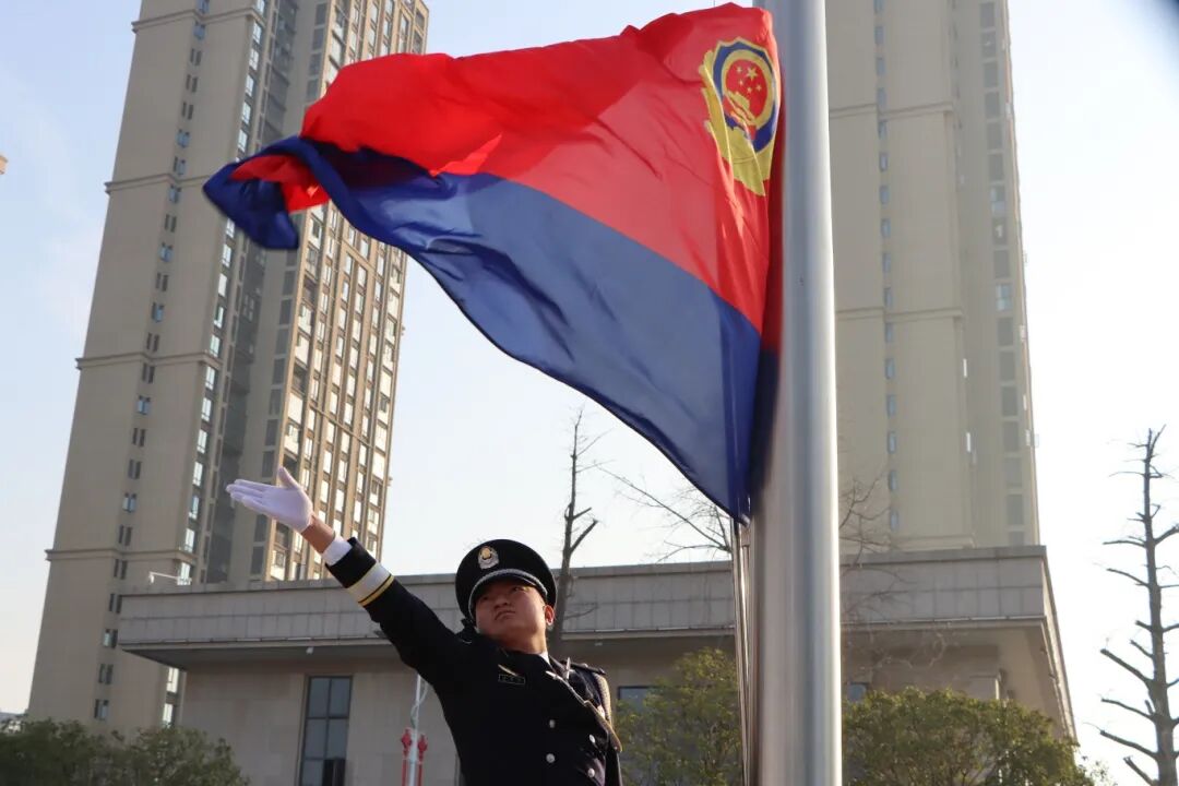《中国人民警察警歌》奏响,警旗冉冉升起。全体民警肃立敬礼,深切感悟人民警察的责任与荣光。