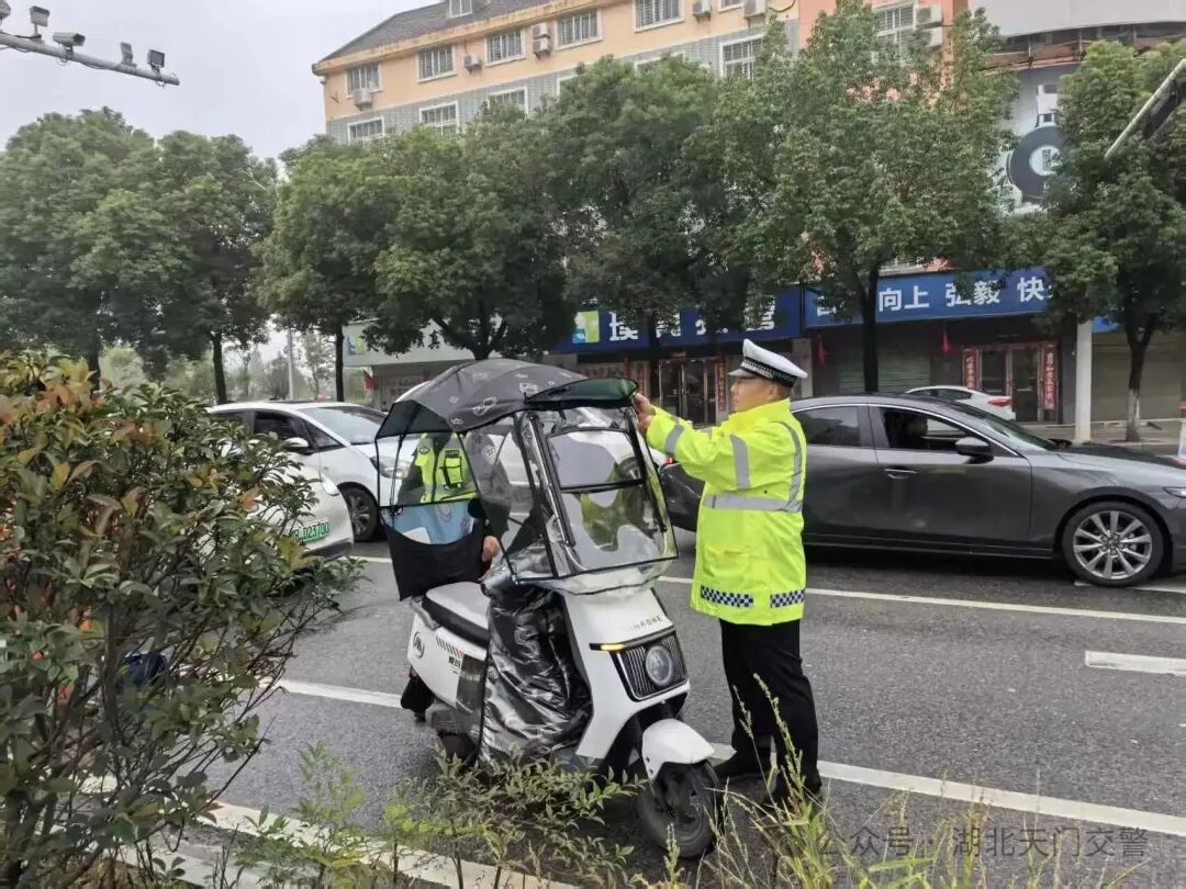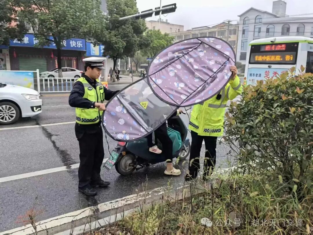 天门交警采取“高峰期定点+平峰期巡控”的勤务模式,在重点路段、路口和小区、超市、商场等重要场所,通过设卡拦截、现场拆除遮阳篷伞、观看警示教育片、面对面宣传教育、媒体实名曝光等方式,教育摩托车、电动车驾乘人员驾车时佩戴头盔,不非法加装遮阳篷,严格遵守道路交通安全法规。