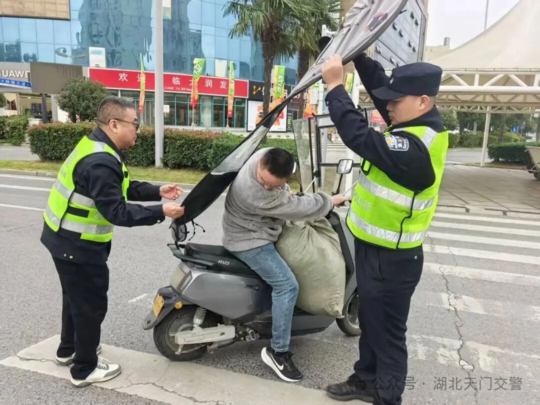 违法行为:未佩戴安全头盔、加装遮阳篷