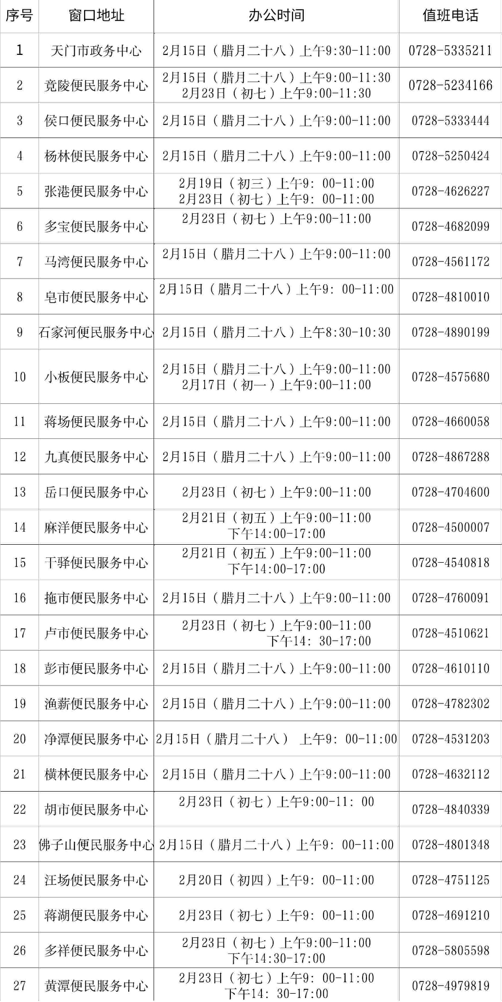 全市公安户籍服务窗口按照以下安排开窗办公,广大市民可以合理安排时间,选择就近的便民服务中心办理户籍业务。