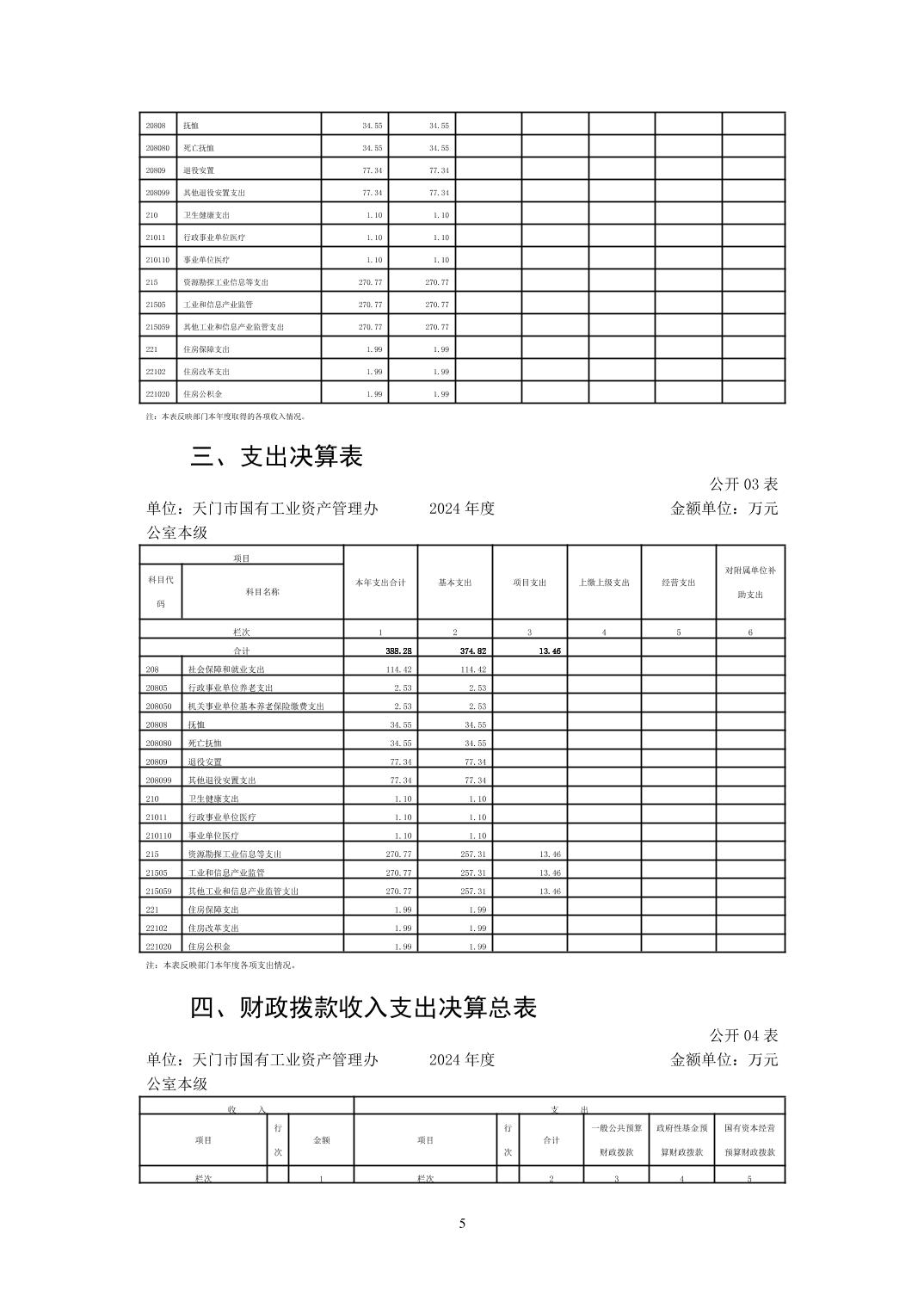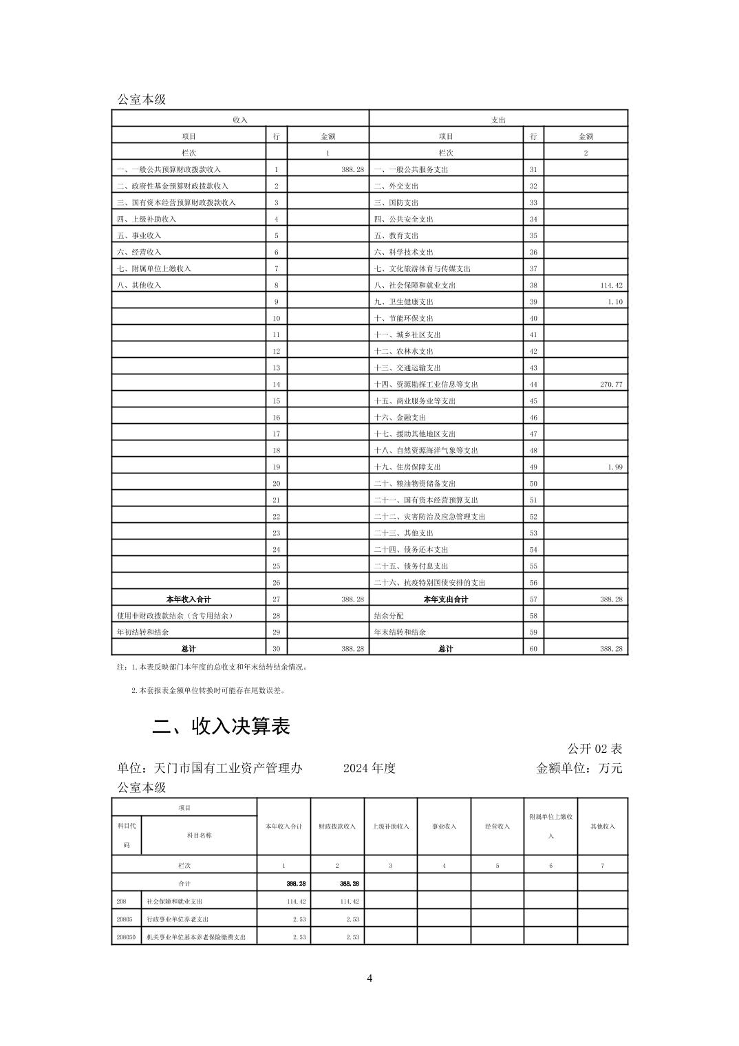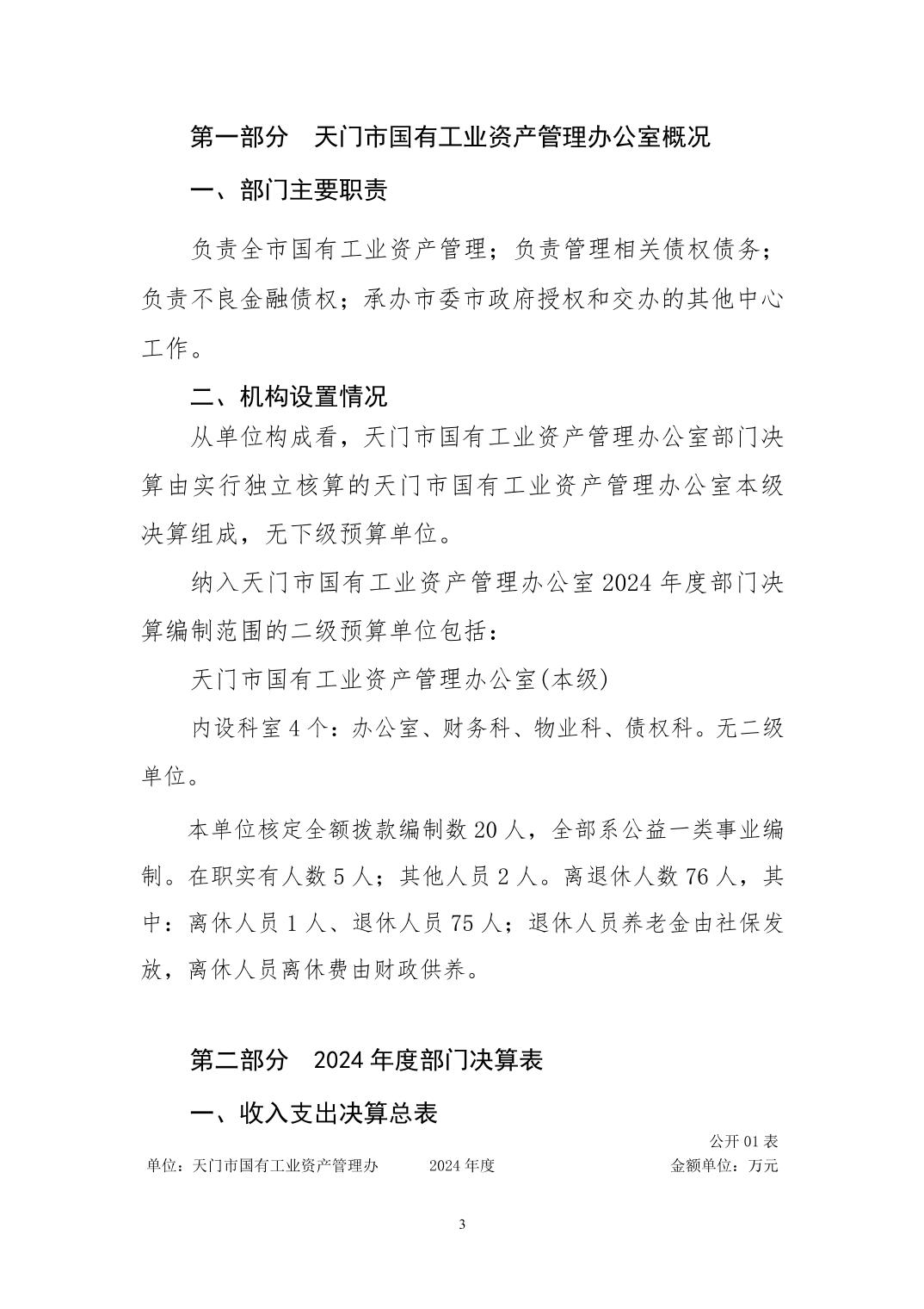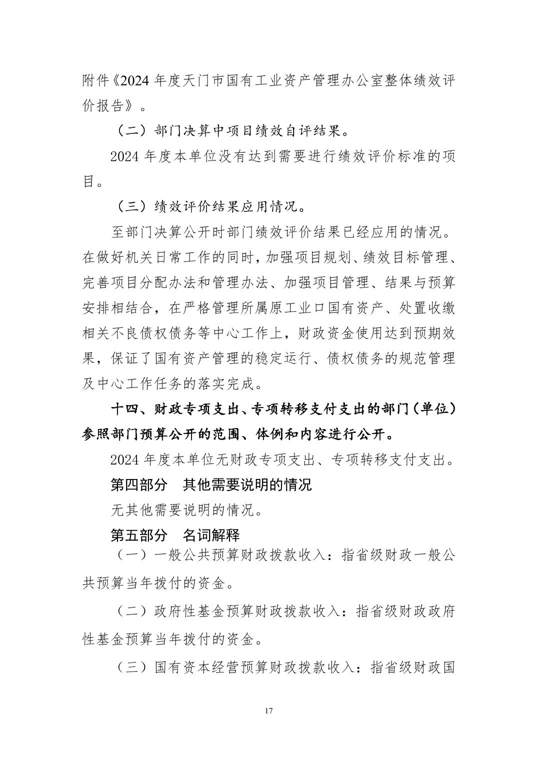 天门市国有工业资产管理办公室2024年度部门决算公开