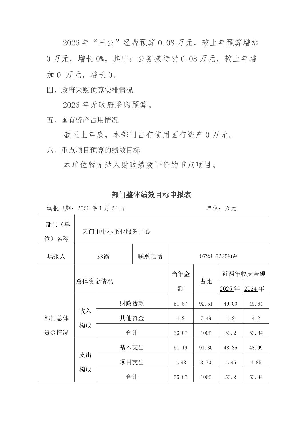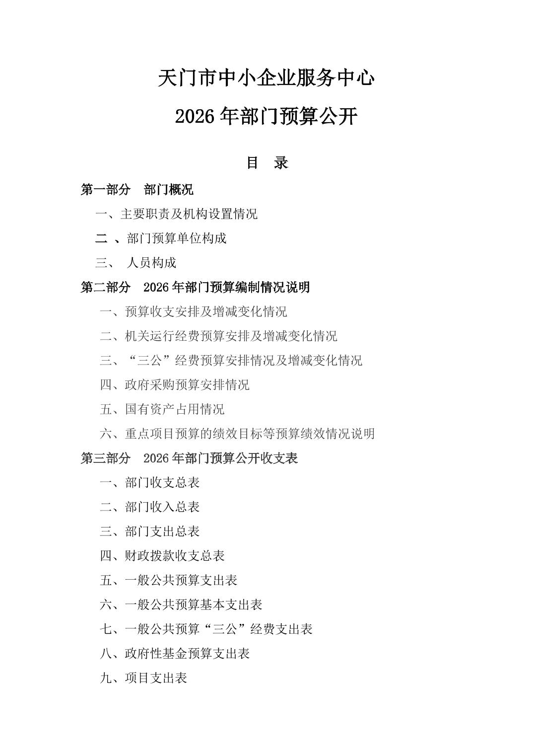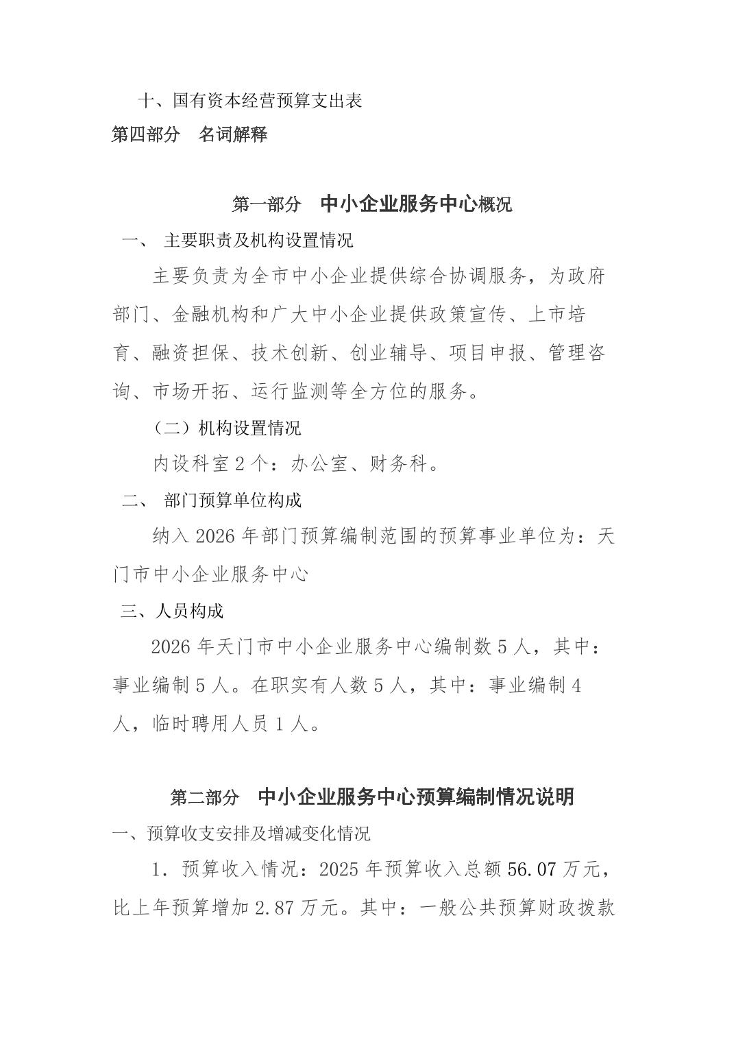 天门市中小企业服务中心2026年部门预算公开