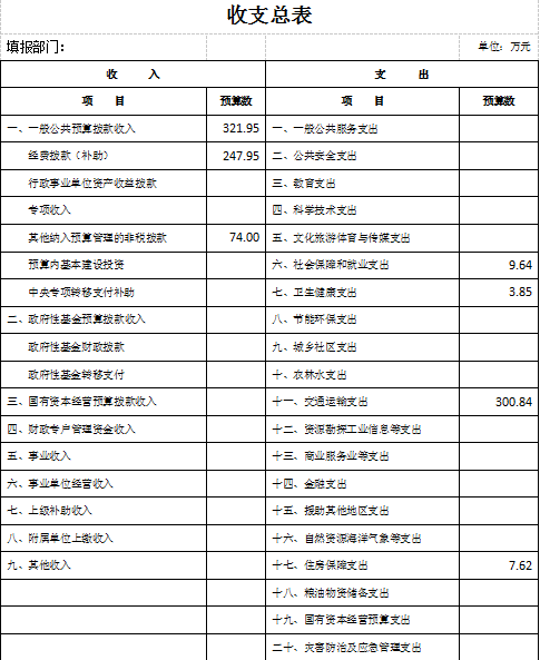 一、部门收支总表