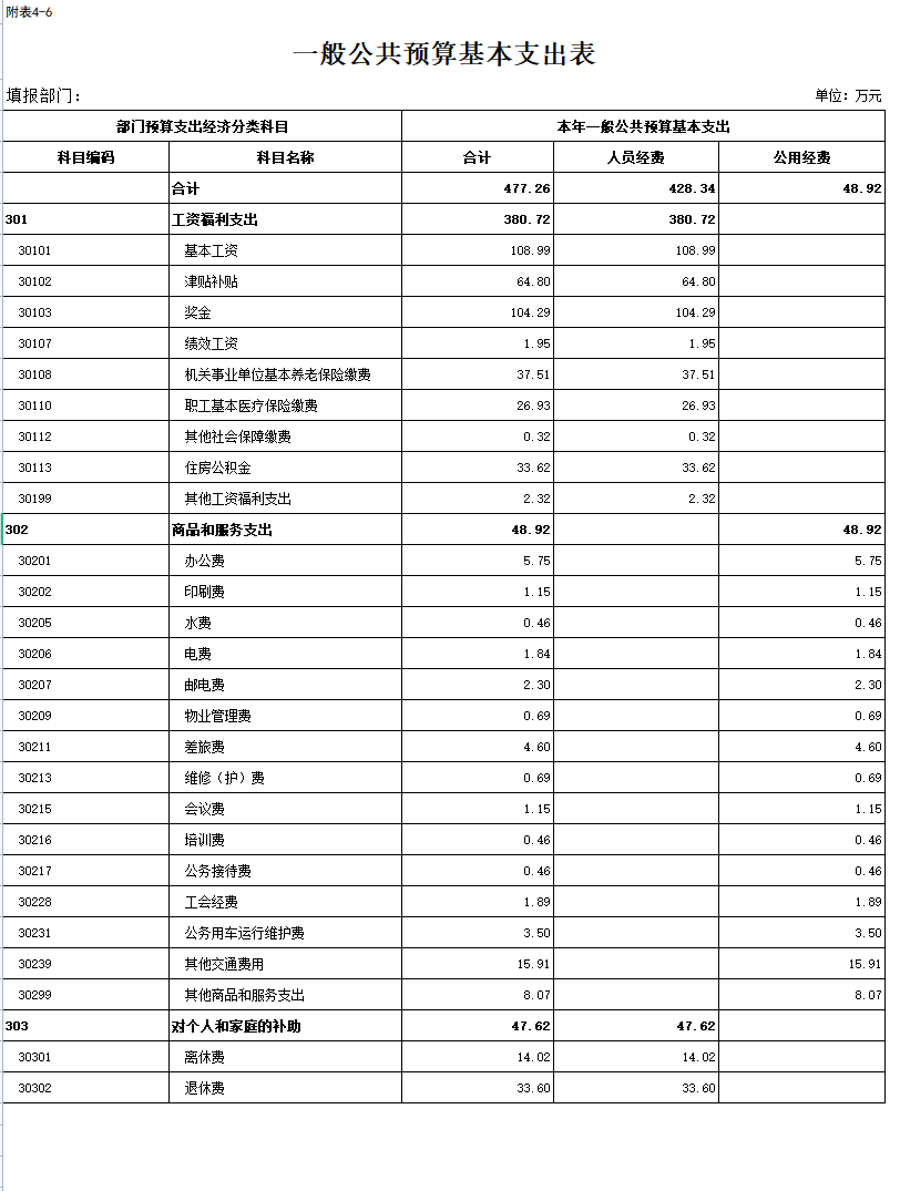附表:2026年部门预算公开表