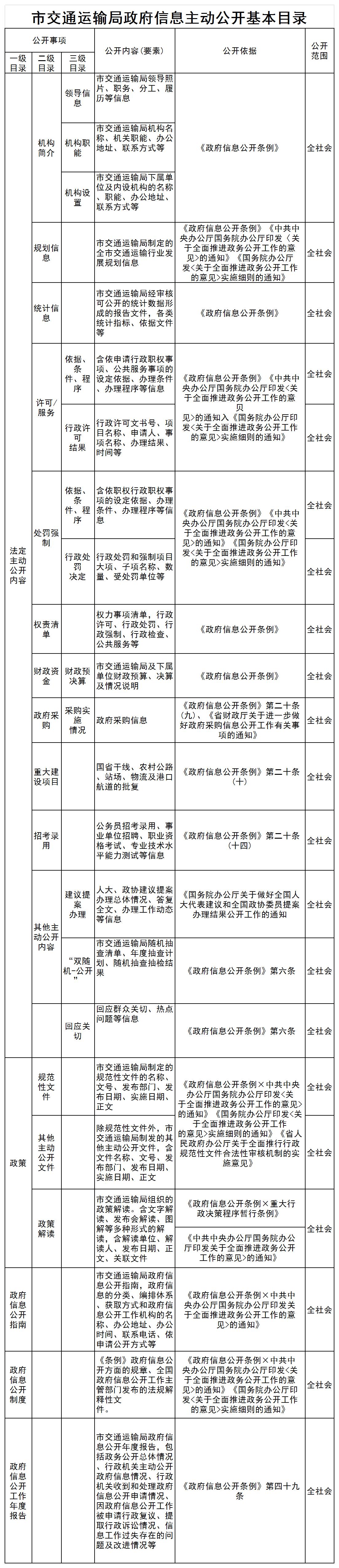 市交通运输局政府信息主动公开基本目录