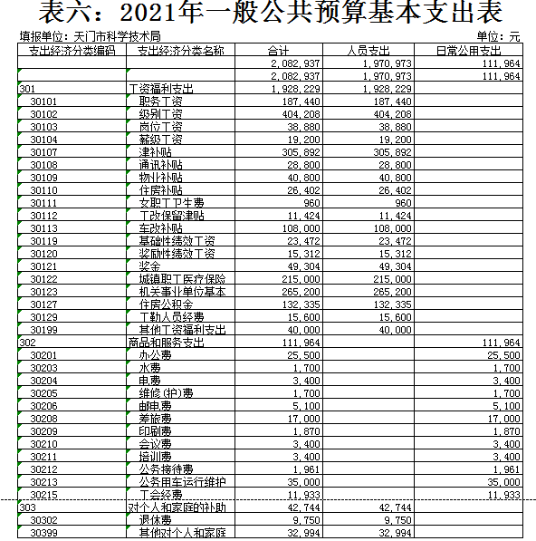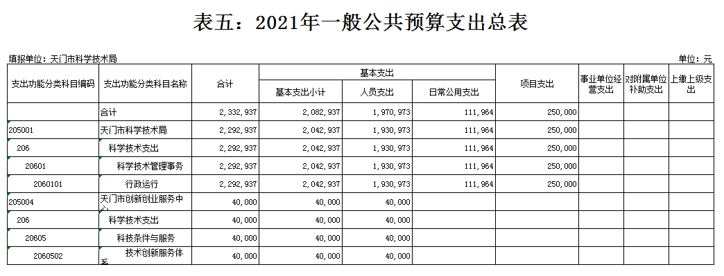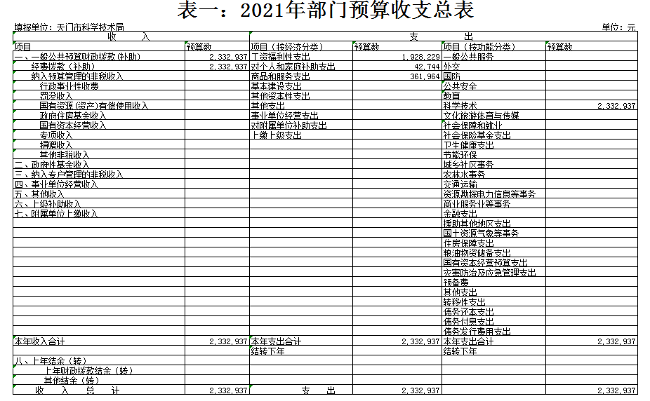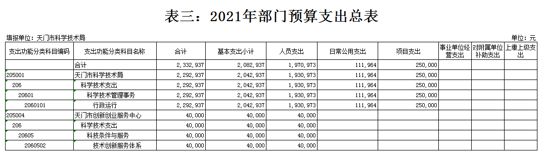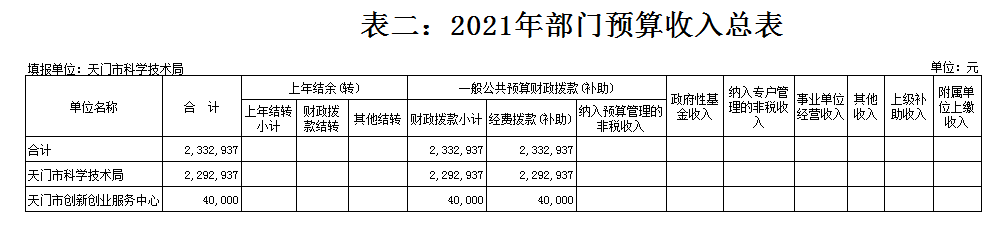 天门市科技部门2021年部门预算