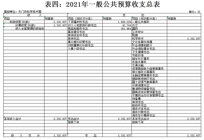 四、一般公共预算收支总表