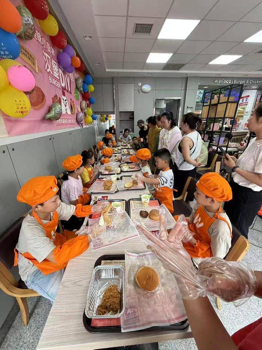 活动在华莱士汉堡店温馨展开。童伴妈妈化身“美食老师”,用生动的动画视频和实物展示,为孩子们讲解汉堡的起源、食材搭配的营养逻辑,说明均衡饮食的重要性。“汉堡本身不是‘垃圾食品’,但要记得搭配蔬菜和水果哦。”孩子们围坐成一圈,不时举手提问:“老师,面包坯为什么是圆形的?”“番茄酱是用番茄做的吗?”现场互动热烈,原本对“食材来源”陌生的孩子们,在问答中逐渐建立起对食物的科学认知。