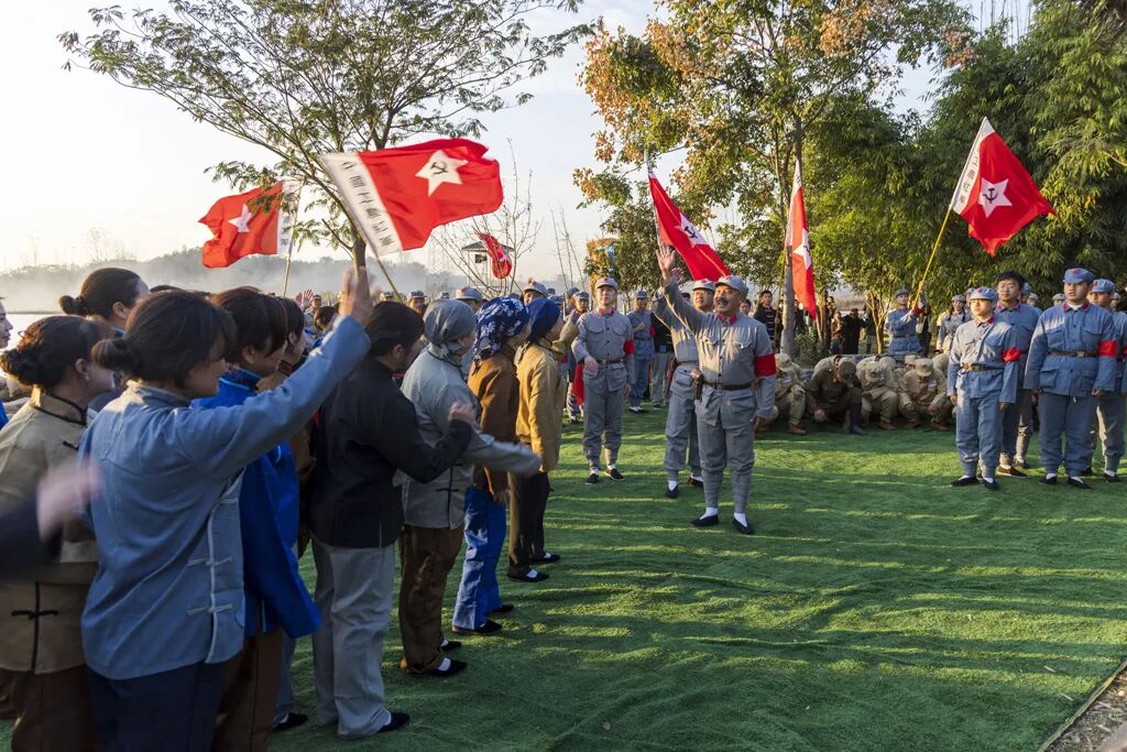首演仪式上,副市长古玉丽鸣锣,市文旅局局长刘志华、湖北众联享付科技有限公司总经理黄浩分别致辞。该剧主创团队历经数月精心打磨,通过生动的舞台表演,艺术再现了革命战争年代文家墩战役的壮烈场景与红三军将士英勇无畏、敢于胜利的英雄气概。