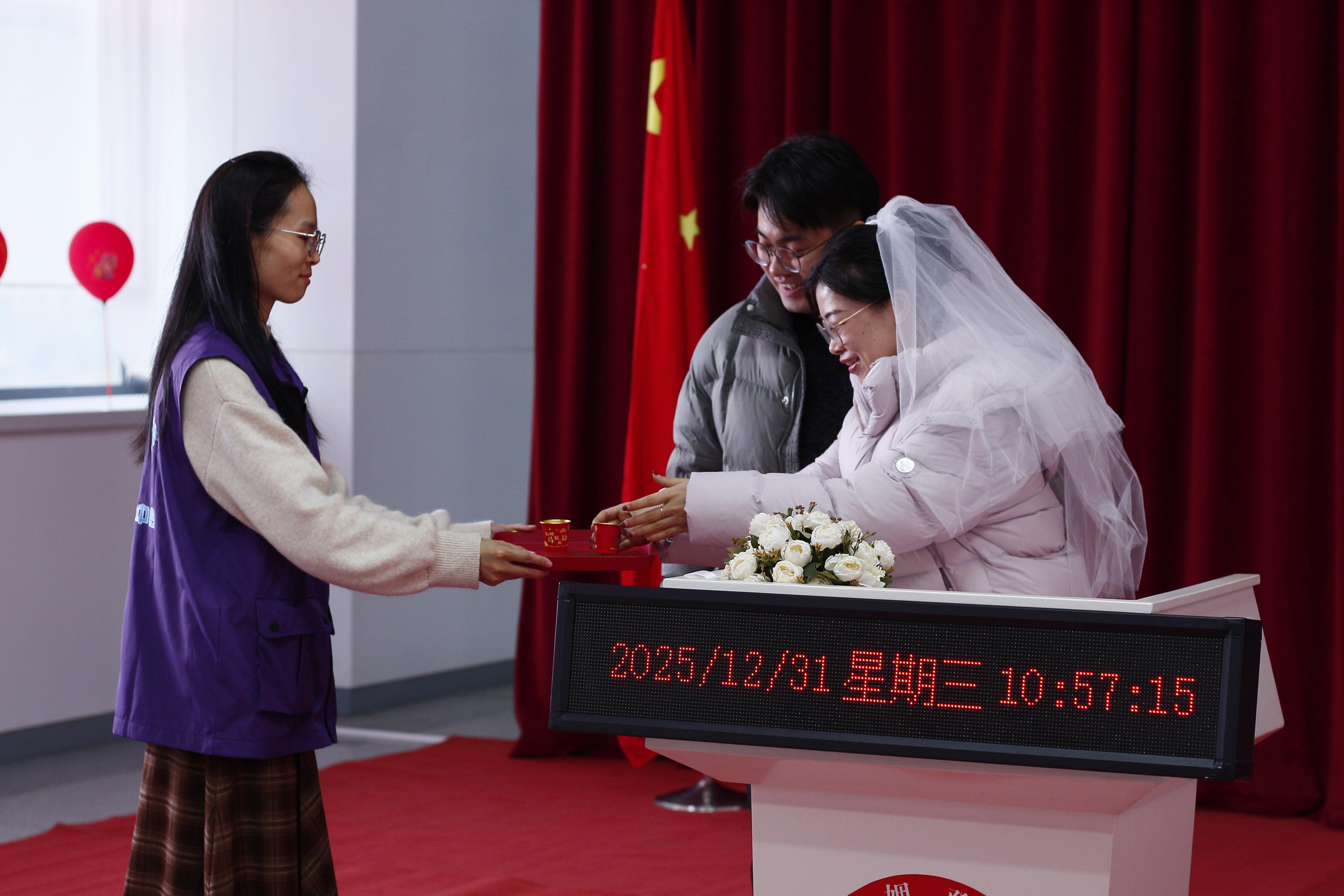 本次活动巧妙融合了趣味互动、庄严宣誓与婚姻辅导,将婚姻登记的领证时刻,拓展为一场关于爱、成长与文化的公开课,强化新婚夫妻的婚姻家庭责任感,让新人们在充满仪式感的体验中,铭记初心,携手迈向幸福新程。