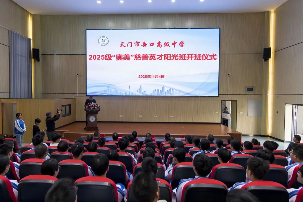 11月4日,天门市岳口高中2025级“奥美”慈善英才阳光班开班暨奖学金发放仪式隆重举行。奥美医疗用品股份有限公司董事长崔金海、医用纺织事业部总经理刘元成,市教育局、市民政局、市慈善总会有关负责人及岳口高中师生代表参加活动。