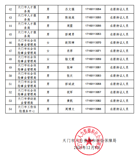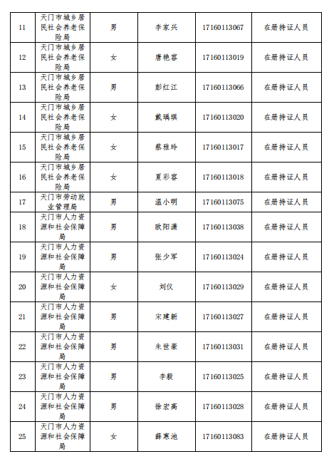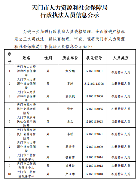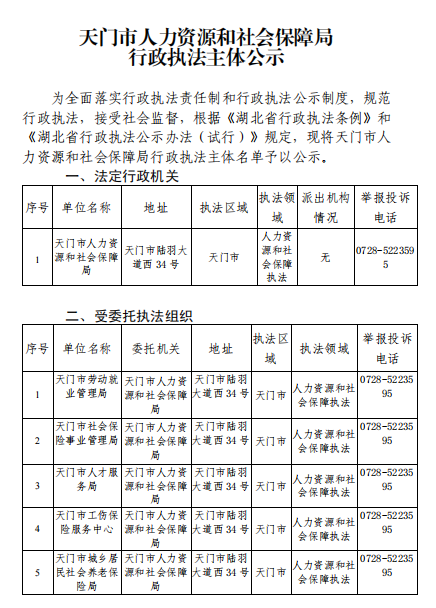 天门市人力资源和社会保障局行政执法主体和执法人员信息公示