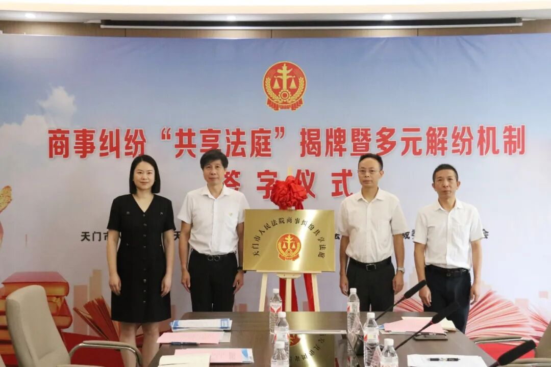 在数字经济时代背景下,为进一步优化辖区营商环境、精准服务市场主体,天门市人民法院设立“涉企案件绿色服务通道”,揭牌成立商事纠纷“共享法庭”,并与市工商联、市司法局、武汉仲裁委员会天门分会联合签署《商事纠纷“共享法庭”多元解纷机制工作方案》,以诉前多元解纷和诉中法庭共享一体化方式为商事主体提供一站式、多元化、便捷化的解纷服务,切实满足了商事纠纷多元化解、快速化解和有效化解的实际需求。