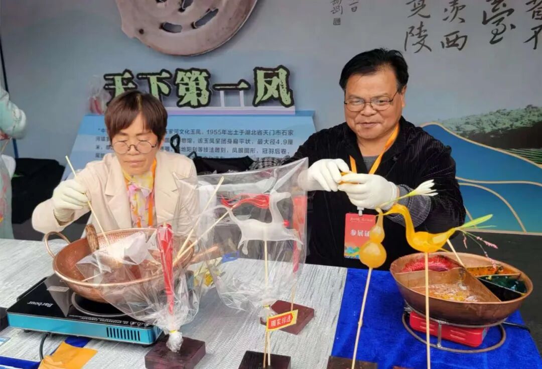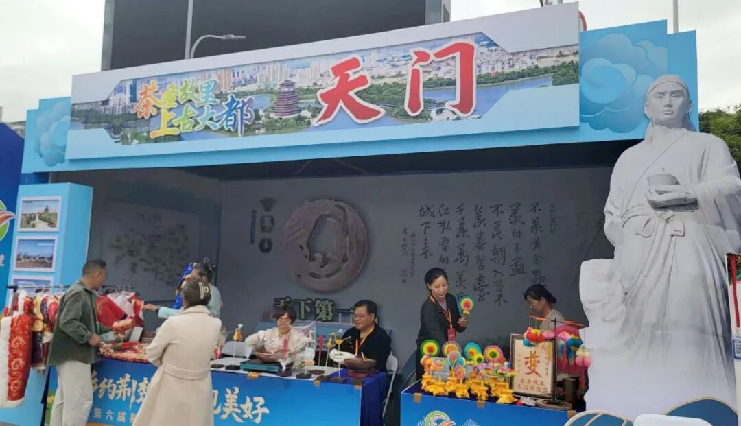在特色产品展区天门展位,人潮攒动,栩栩如生的天门糖塑作品,吸引众多游客驻足观赏;色彩鲜艳、造型精巧的纸花,体现了民间手工艺的智慧;蕴含美好寓意的猫猫鞋,则传递出浓郁的地域风情和民俗文化。