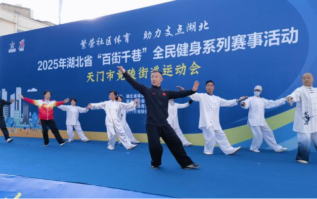 此次“百街千巷”活动在天门市竟陵街道站的圆满举办,不仅激发了广大群众的健身热情,也以体育为纽带增强了社区凝聚力,激活了城市健康细胞。恰逢第十五届全运会胜利闭幕,湖北健儿在此次全国群众体育领域舞台上展现出强劲实力——在群众比赛项目中斩获9金8银8铜,金牌数位列全国第五;参加群众展演项目荣获2个一等奖、5个二等奖、3个三等奖,一等奖数量高居全国第三。这些成绩标志着湖北群众体育发展水平已稳居全国第一方阵、领跑中部地区。全运赛场上的卓越表现与街头巷尾火热的健身场景交相辉映,共同谱写了湖北深入推进全民健身战略的精彩篇章,让运动融入日常生活,让健康成为社会风尚,进一步唱响“普及全民健身,缔造幸福生活”主题。