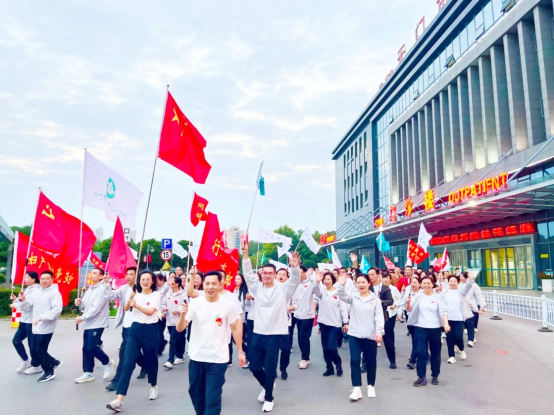 当日6时,300人着装整齐,从主院区门诊楼前集合出发,沿预定路线徒步前往汇侨院区。队伍行进间,职工们精神饱满、步伐矫健,沿途与市民友好互动,成为城市清晨一道亮丽的文明风景线。
