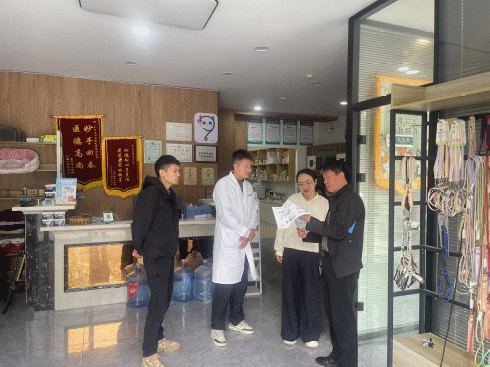 专家组一行来到天门市区天问宠物医院,为该宠物医院授予“天门市动物狂犬病免疫接种点”标识牌。目前天门市正在进行动物狂犬病无疫区试点,为做好养犬免疫管理工作,进一步便利市民就近为犬只接种疫苗,推动文明养犬、规范养犬,天门市动物疫病预防控制中心牵头并统一制作“天门市动物狂犬病免疫接种点”标识,发放给已被认定为城区犬类狂犬病免疫点的动物诊疗机构与各乡镇畜牧兽医服务中心。