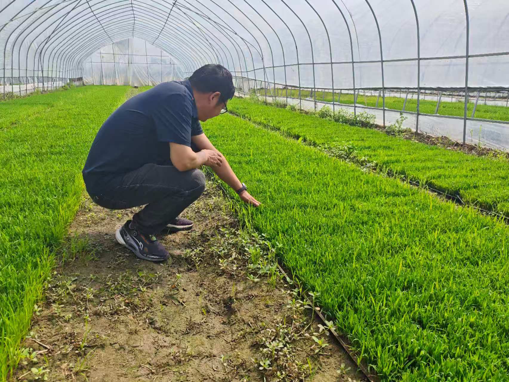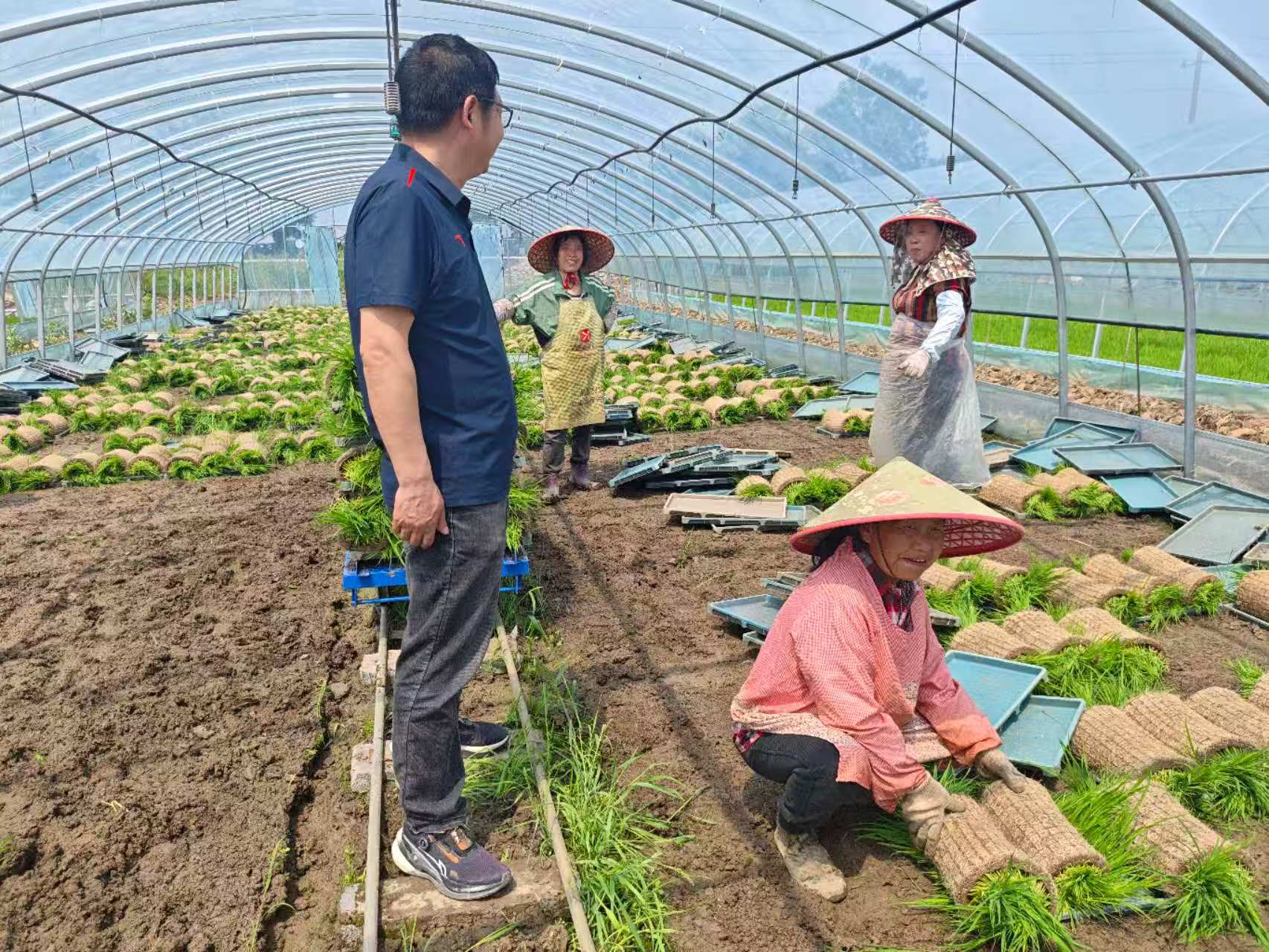 在惠丰水稻种植专业合作社,技术人员深入田间查看再生稻育秧、田间长势及机具配套情况,详细了解种植规模、品种选择及生产难点,围绕精准留桩、机收减损、水肥管理等关键环节现场答疑指导。