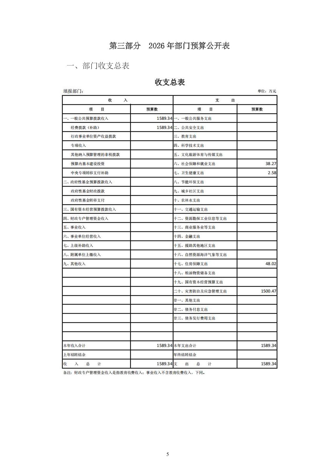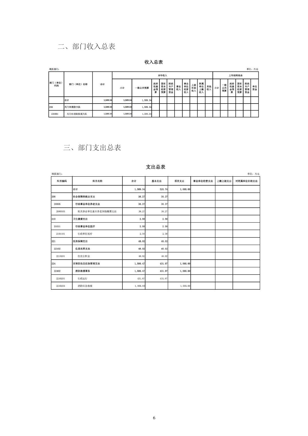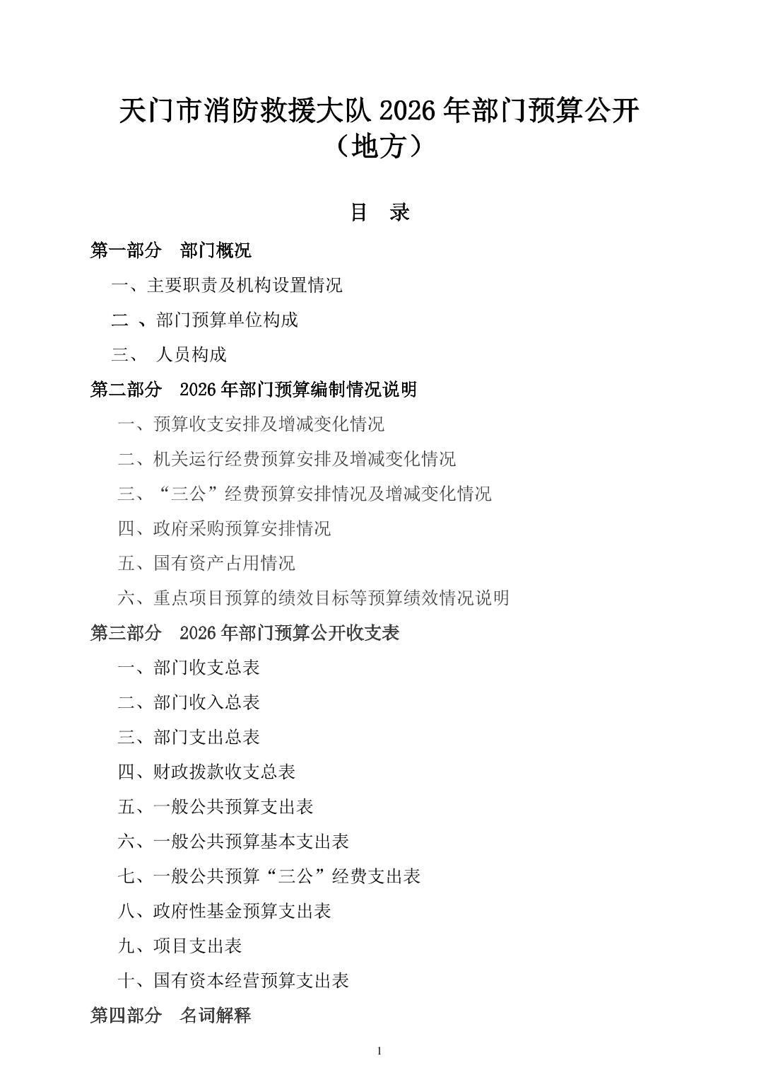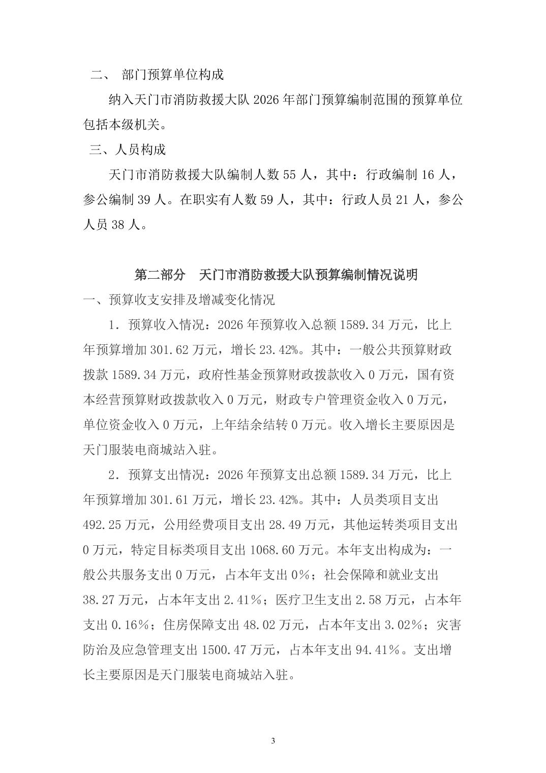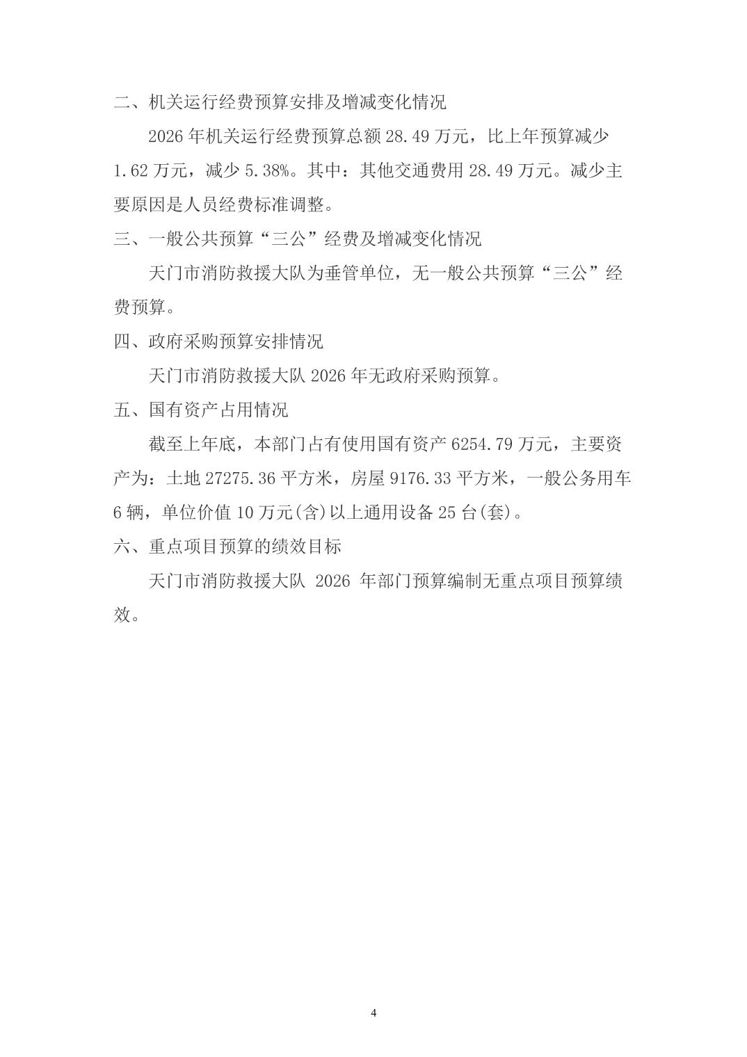 天门市消防救援大队2026年部门预算公开(地方)