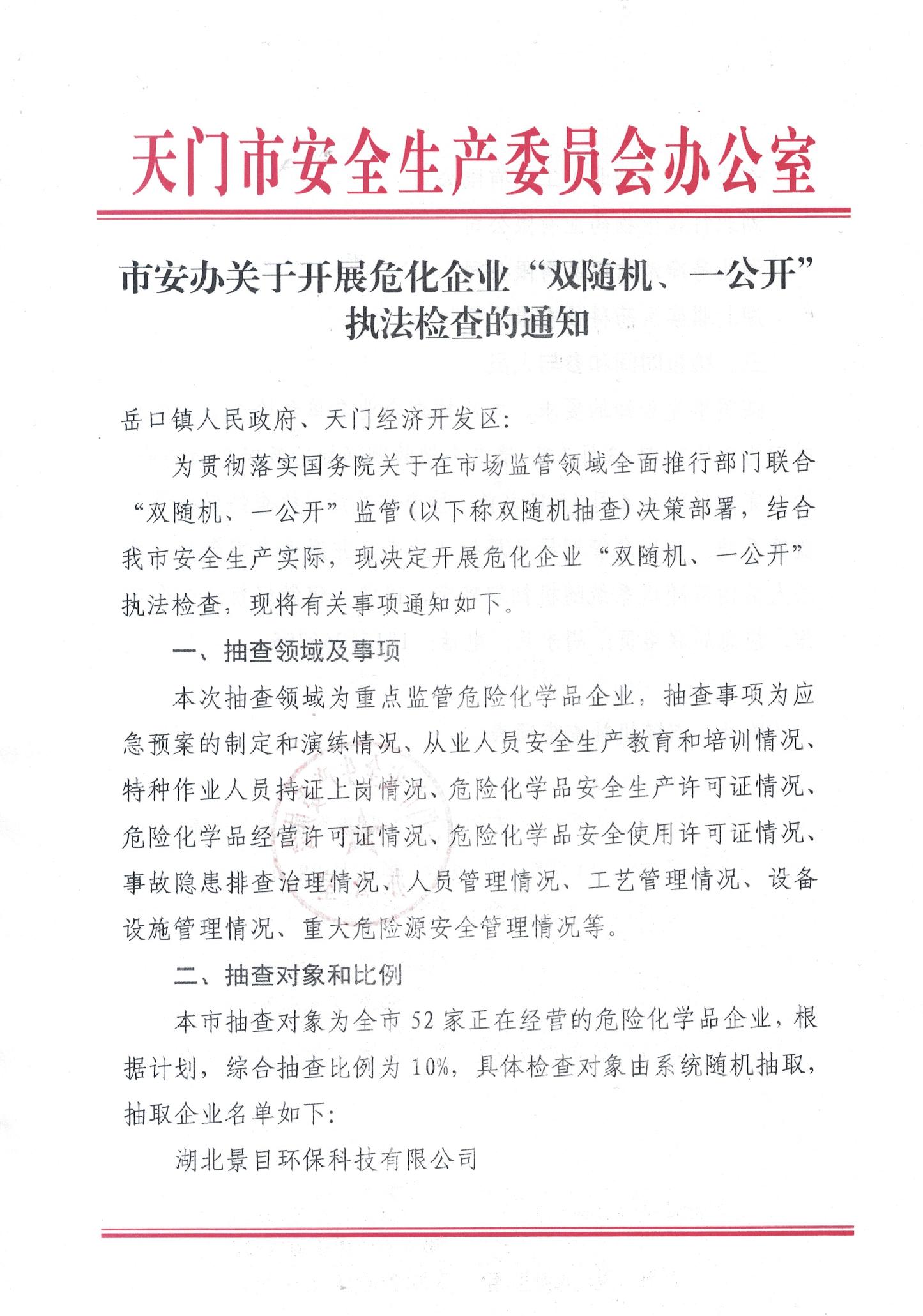 市安办关于开展危化企业“双随机、一公开”执法检查的通知