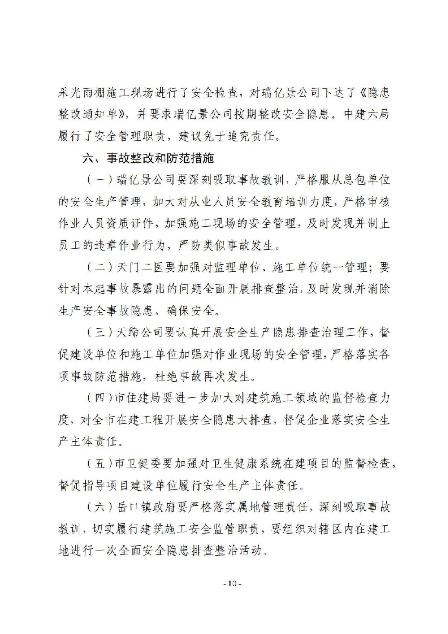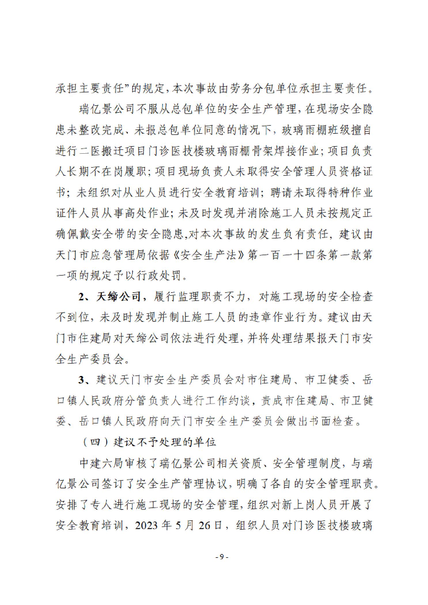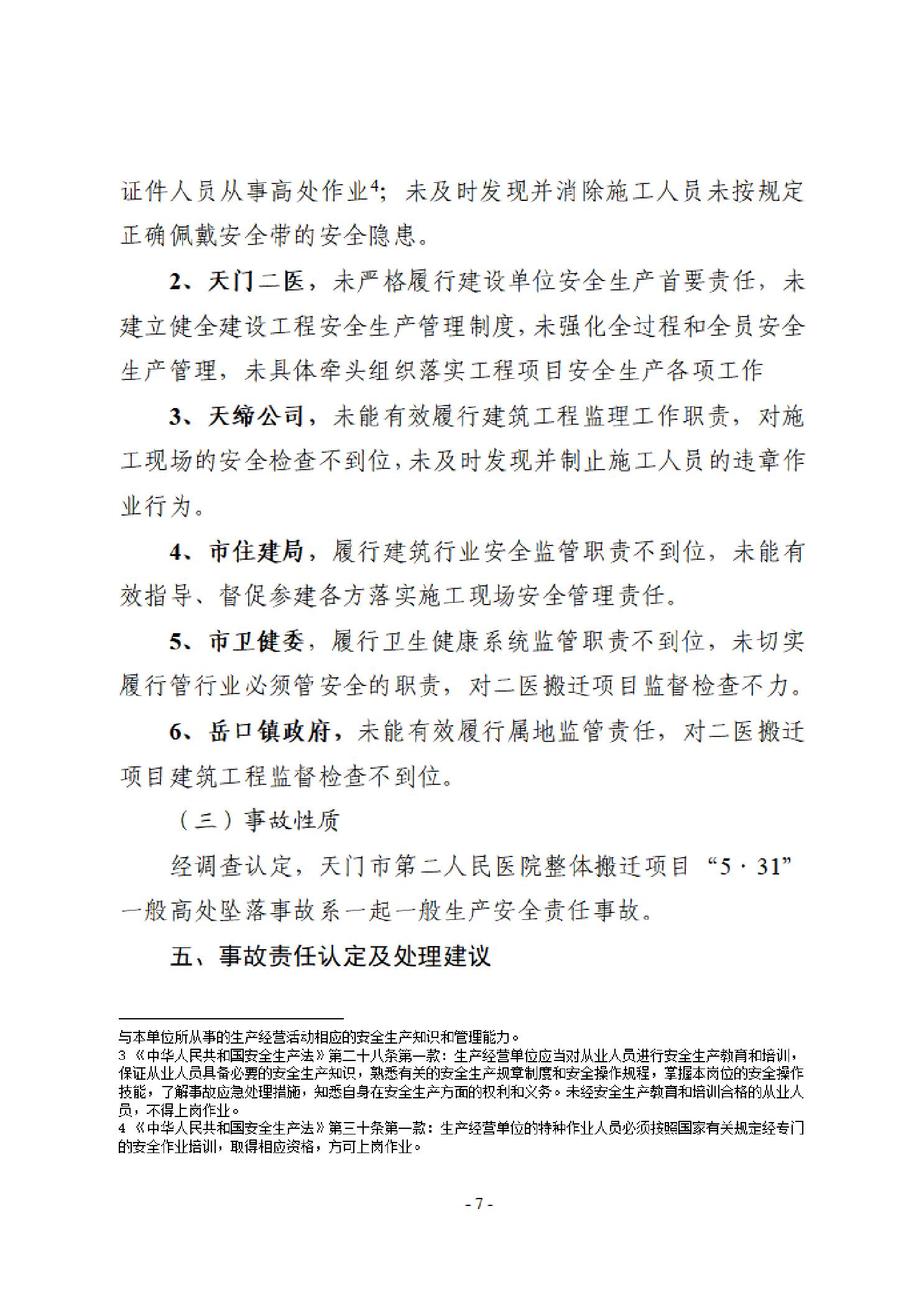 天门市第二人民医院整体搬迁项目“5·31”一般高处坠落事故调查报告