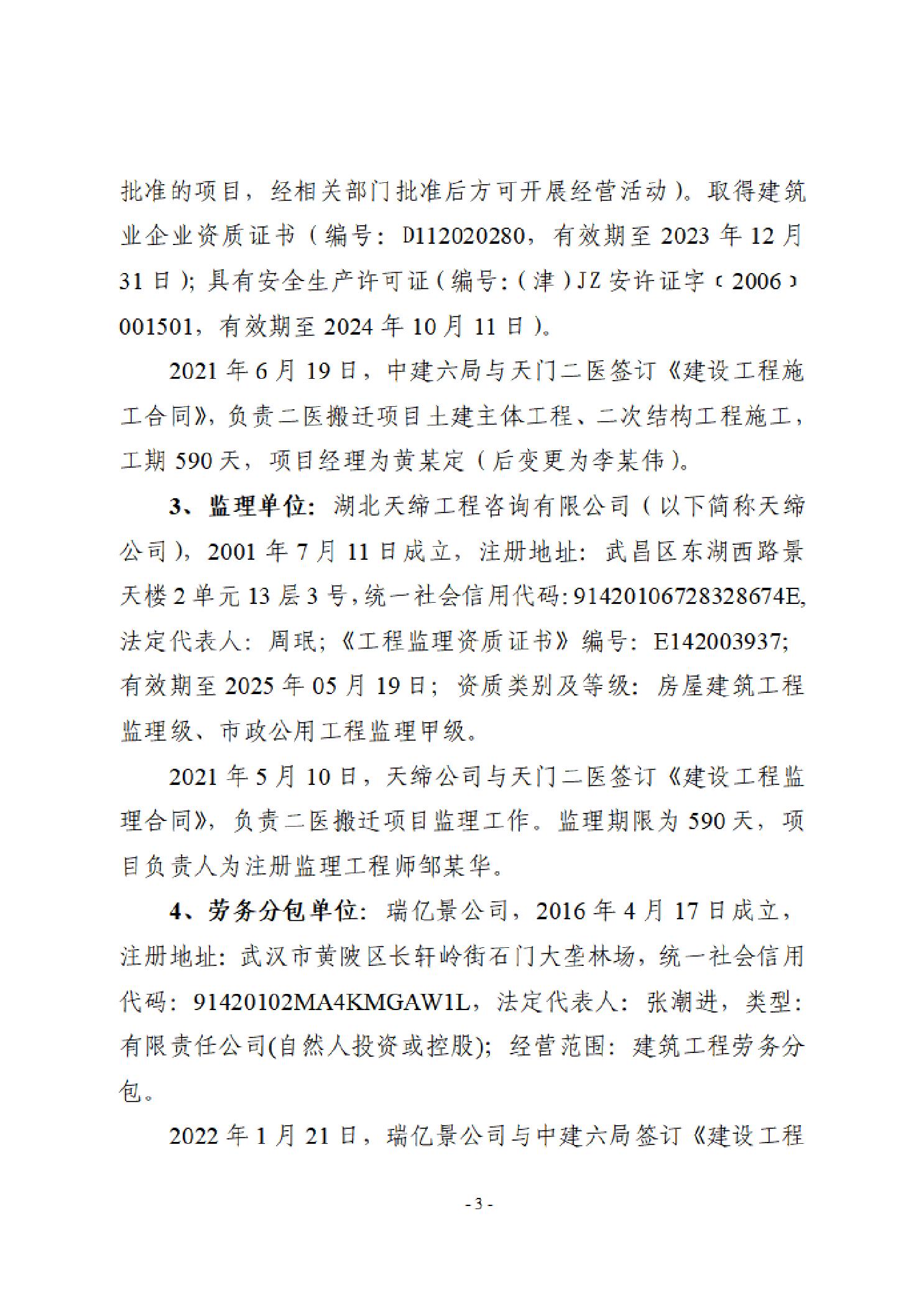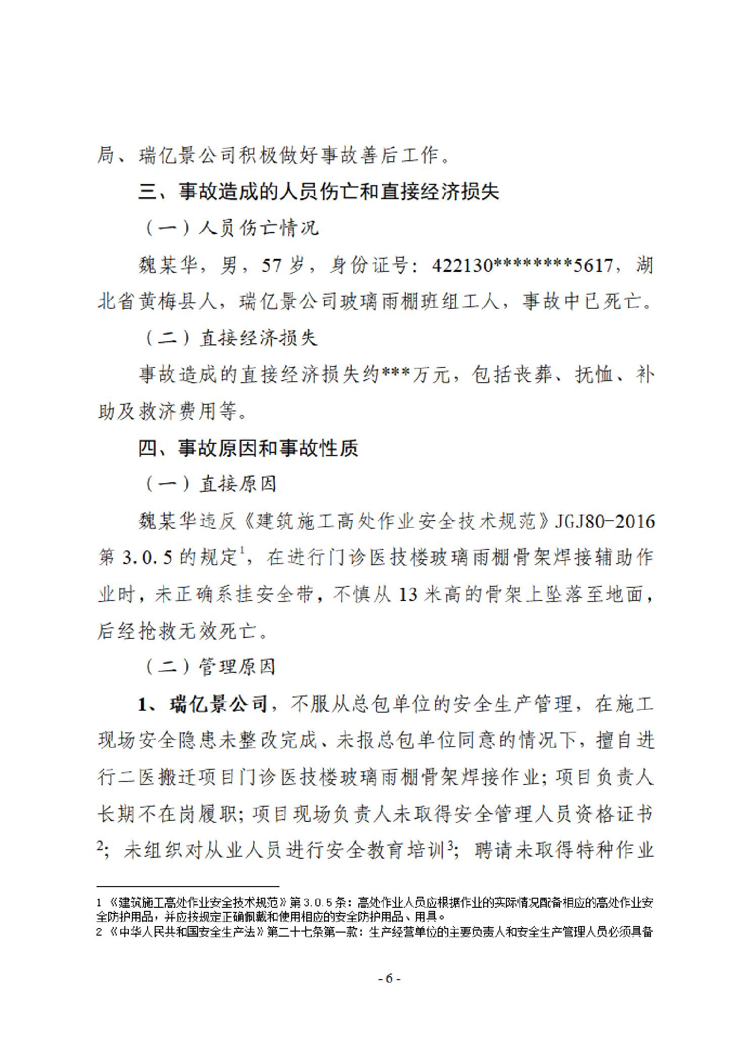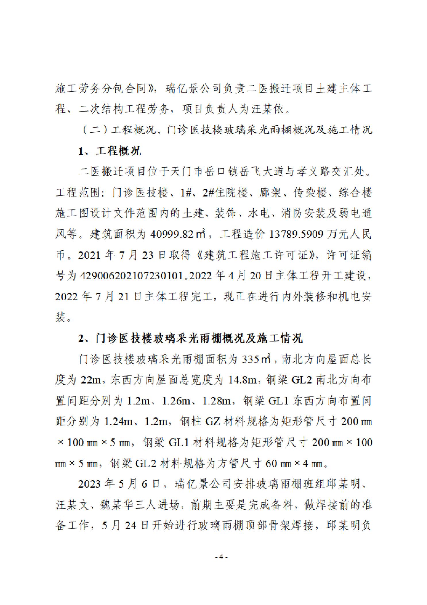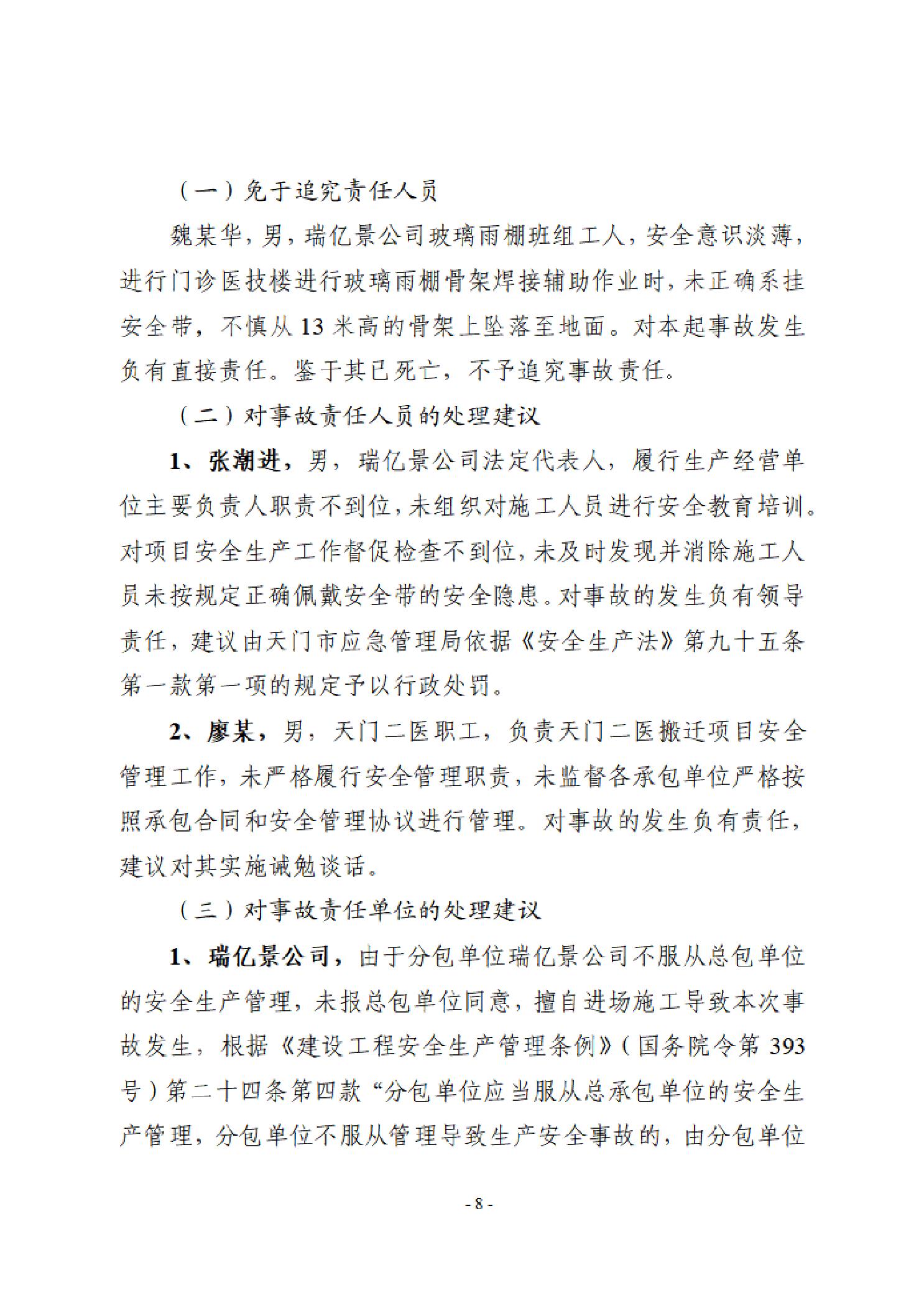 天门市第二人民医院整体搬迁项目“5·31”一般高处坠落事故调查报告