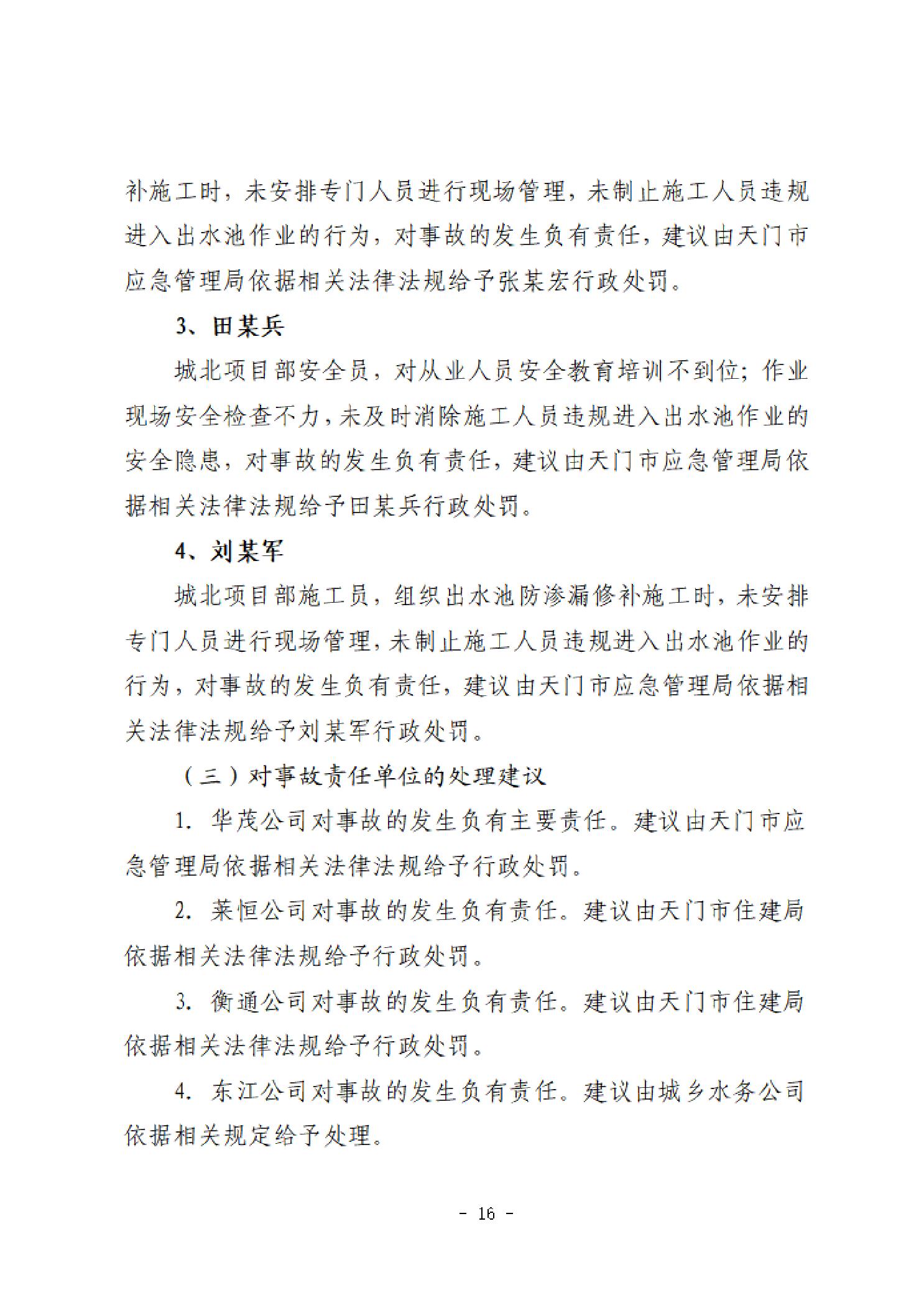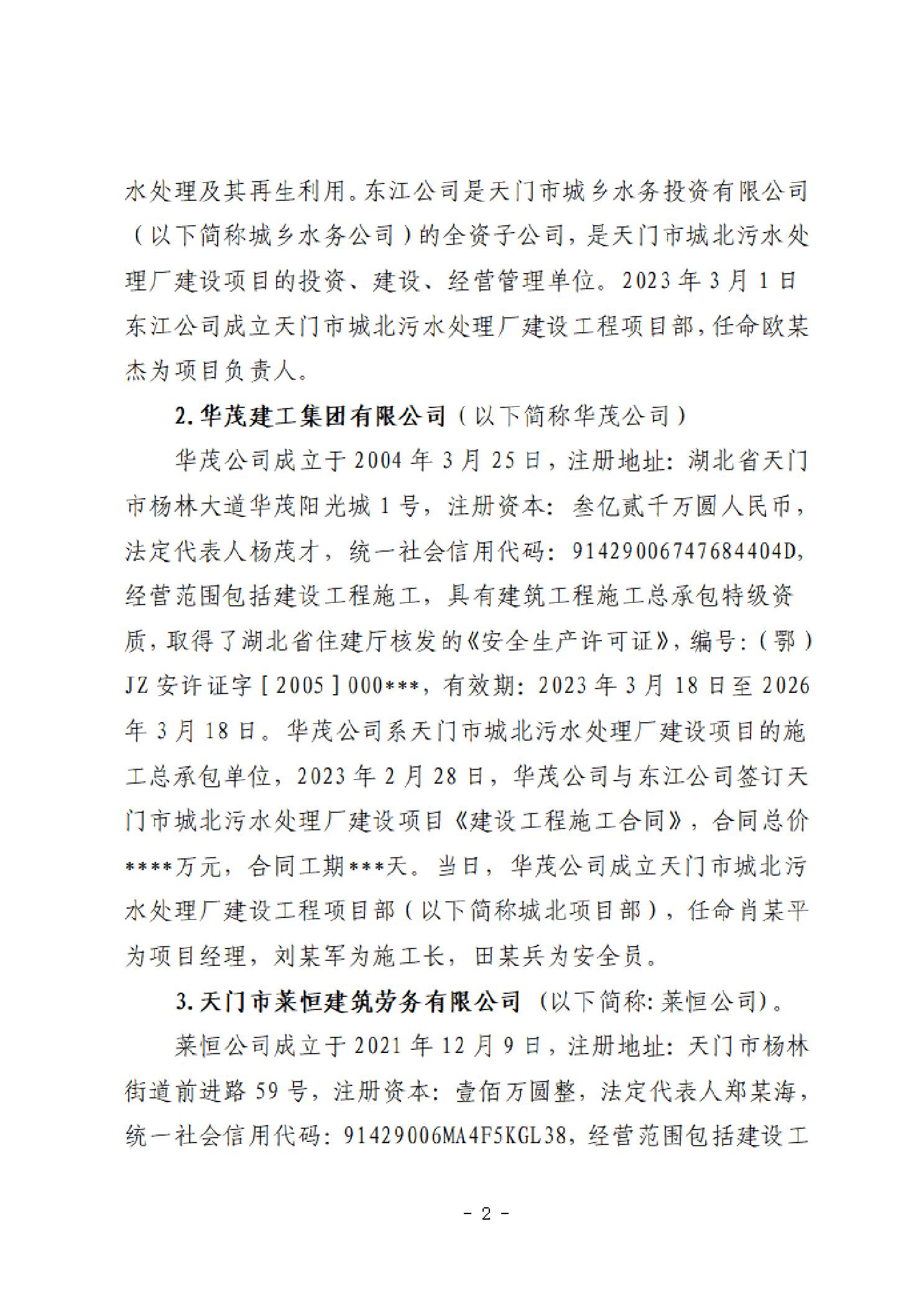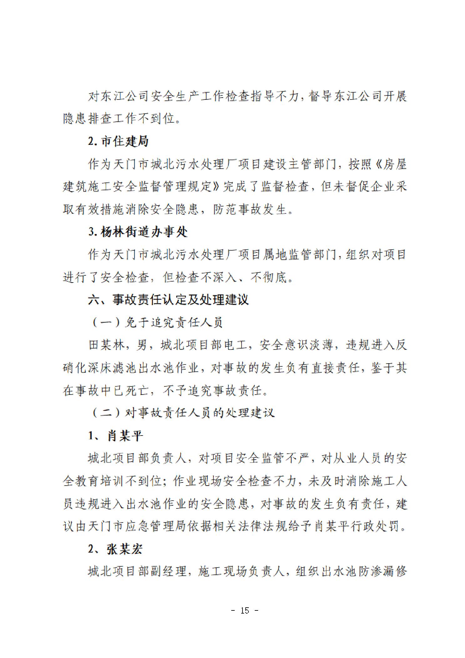 天门市城北污水处理厂建设项目“4·13”一般中毒和窒息事故调查报告