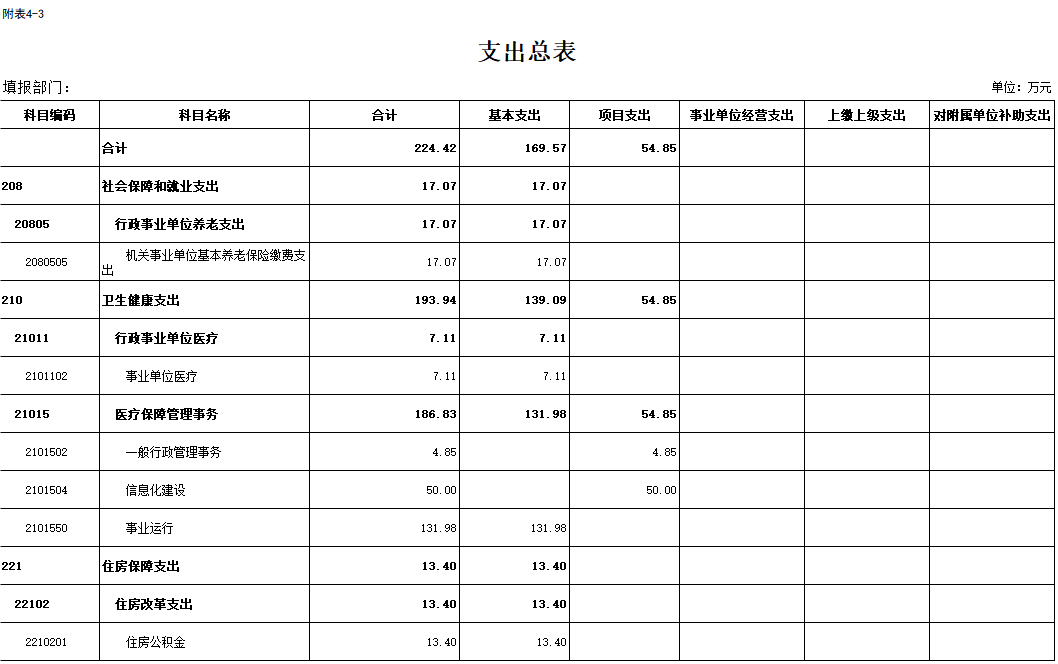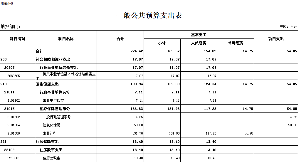 2.预算支出情况:2026年预算支出总额224.42万元,比上年预算增加33.65万元,增加17.64%。其中:基本支出169.57万元,占总支出的75.56%;项目支出54.85万元,占总支出的24.36%。主要用于本中心临时人员工资福利支出、医保信息系统维护等。