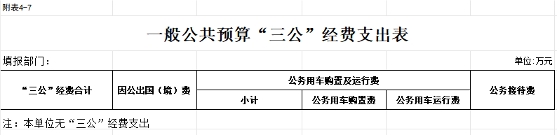 五、“三公”经费:指使用一般公共预算财政拨款安排的因公出国(境)费、公务用车购置及运行维护费和公务接待费。其中,因公出国(境)费用反映单位公务出国(境)的国际旅费、国外城市间交通费、住宿费、伙食费、培训费、公杂费等支出;公务用车购置及运行维护费反映单位公务用车车辆购置支出(含车辆购置税)及租用费、燃料费、维修费、过桥过路费、保险费、安全奖励费用等支出;公务接待费反映单位按规定开支的各类公务接待(含外宾接待)费用。