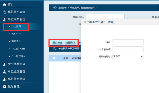 已开通网上办事大厅服务的缴存单位可登录网上营业厅,点击“单位账户管理”——“个人开户”——“开户申请”,填写相关信息即可为职工开设个人公积金账户。