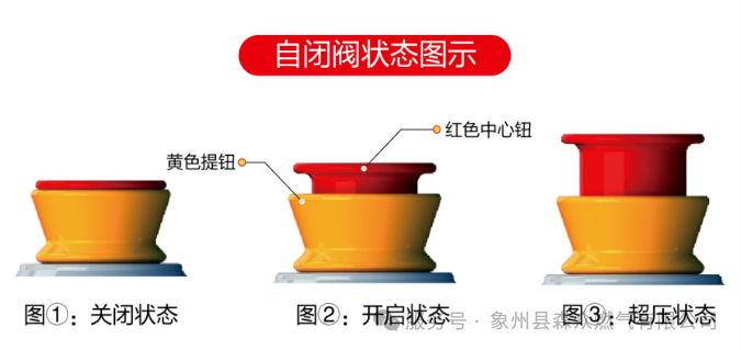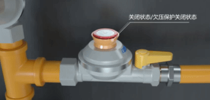 如燃气余额不足,自闭阀将自动关闭,充气后需手动拉起黄色外圈提钮,即可再次恢复通气。