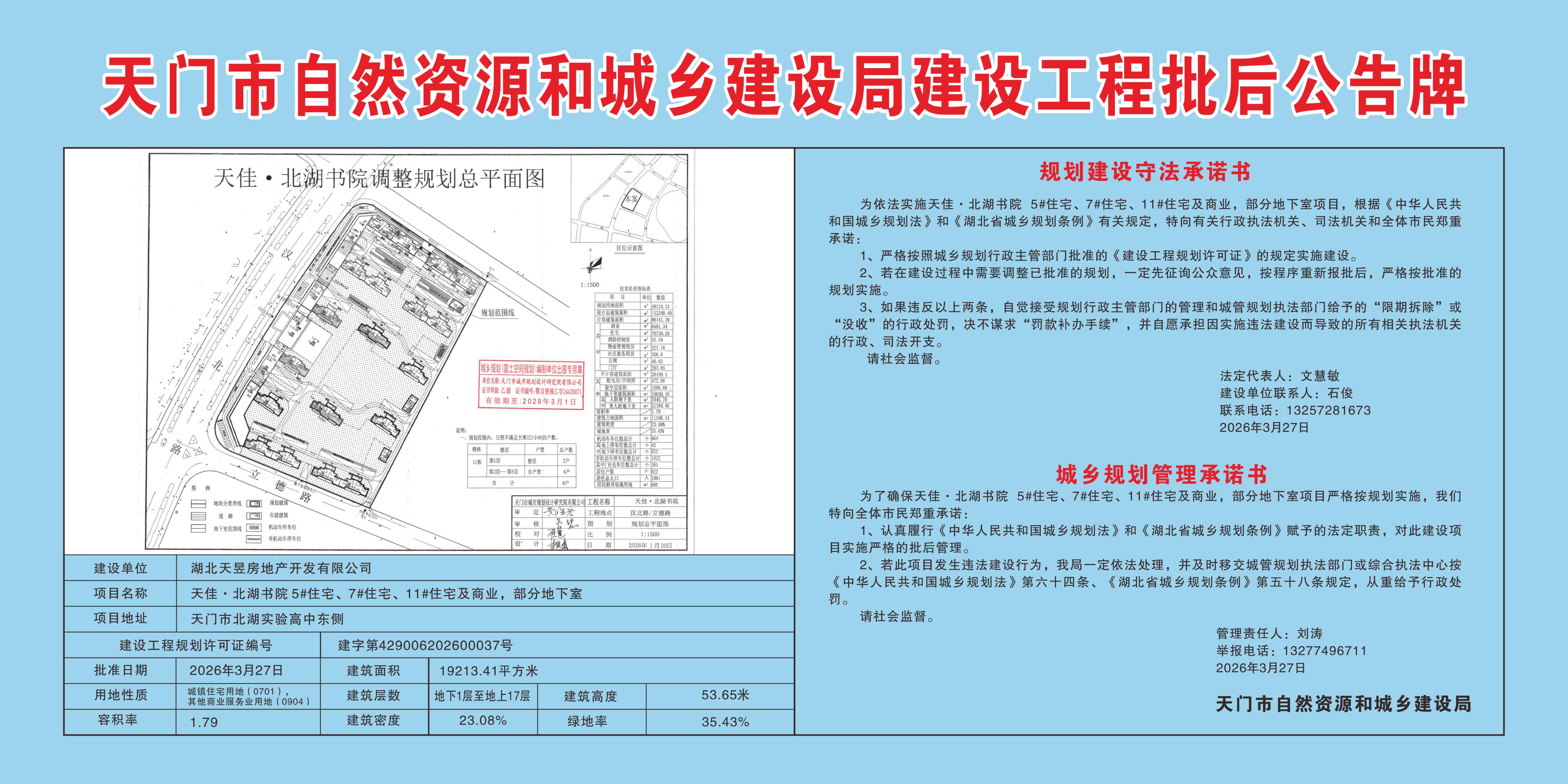 天佳·北湖书院 5#住宅、7#住宅、11#住宅及商业,部分地下室批后公示