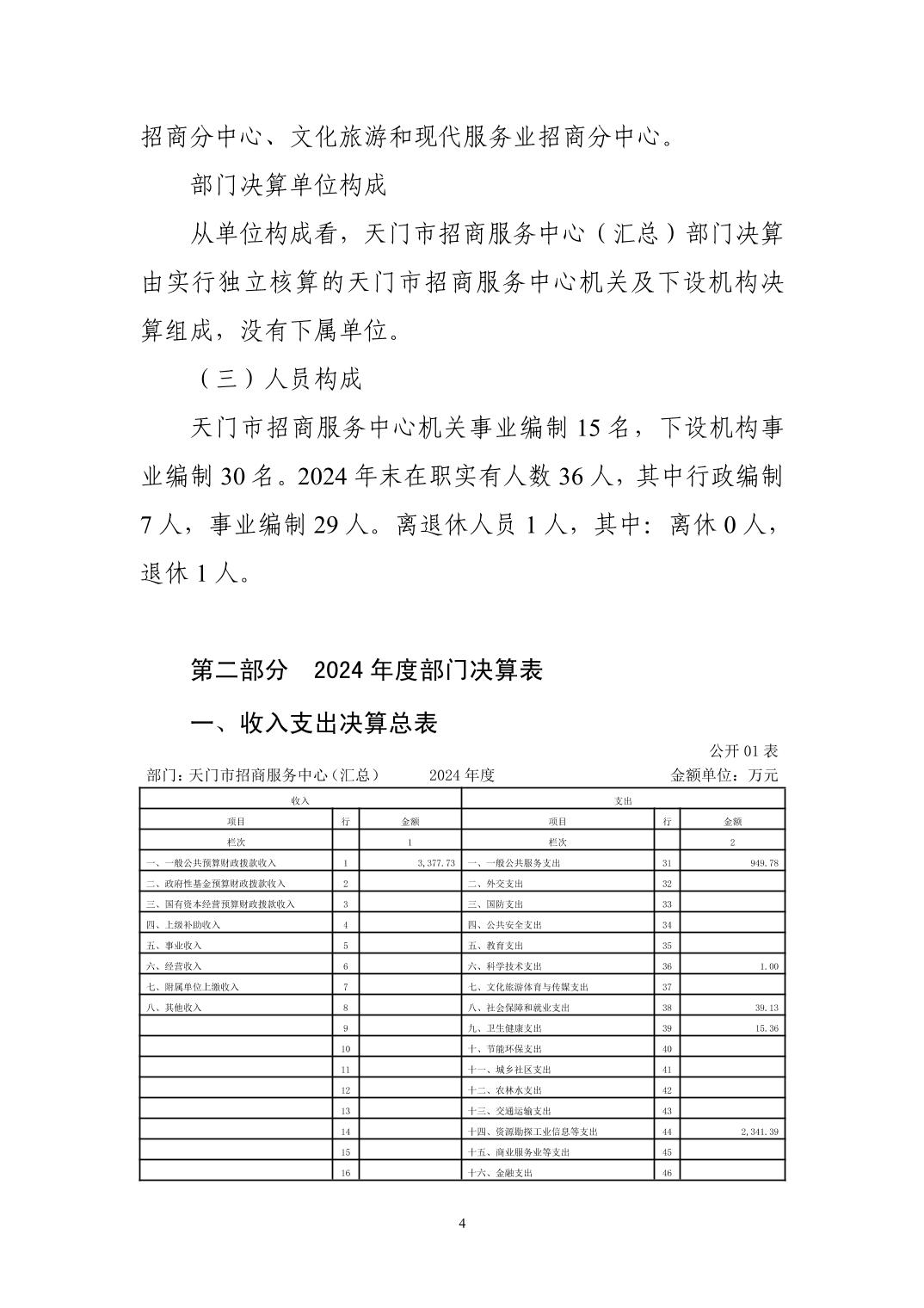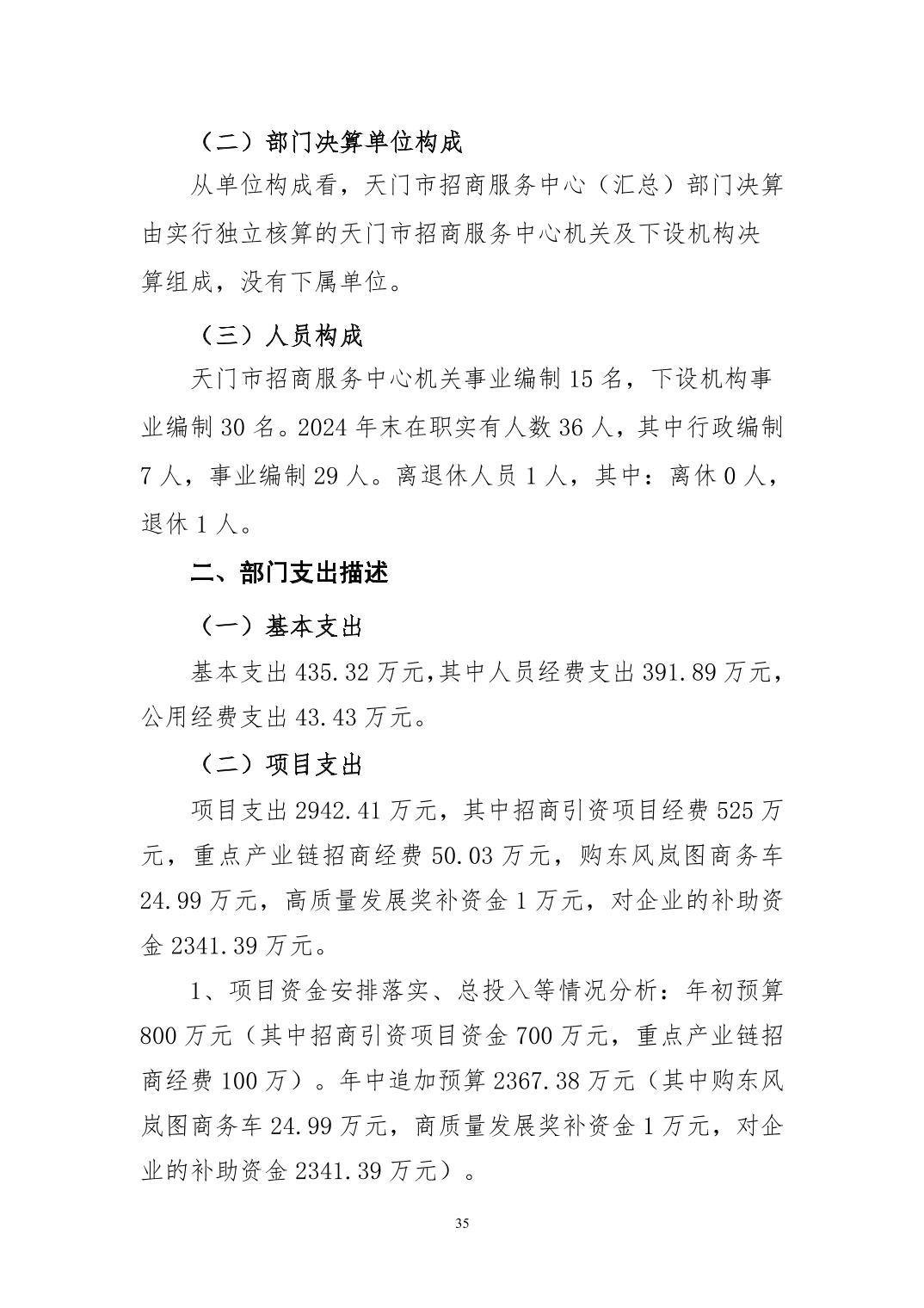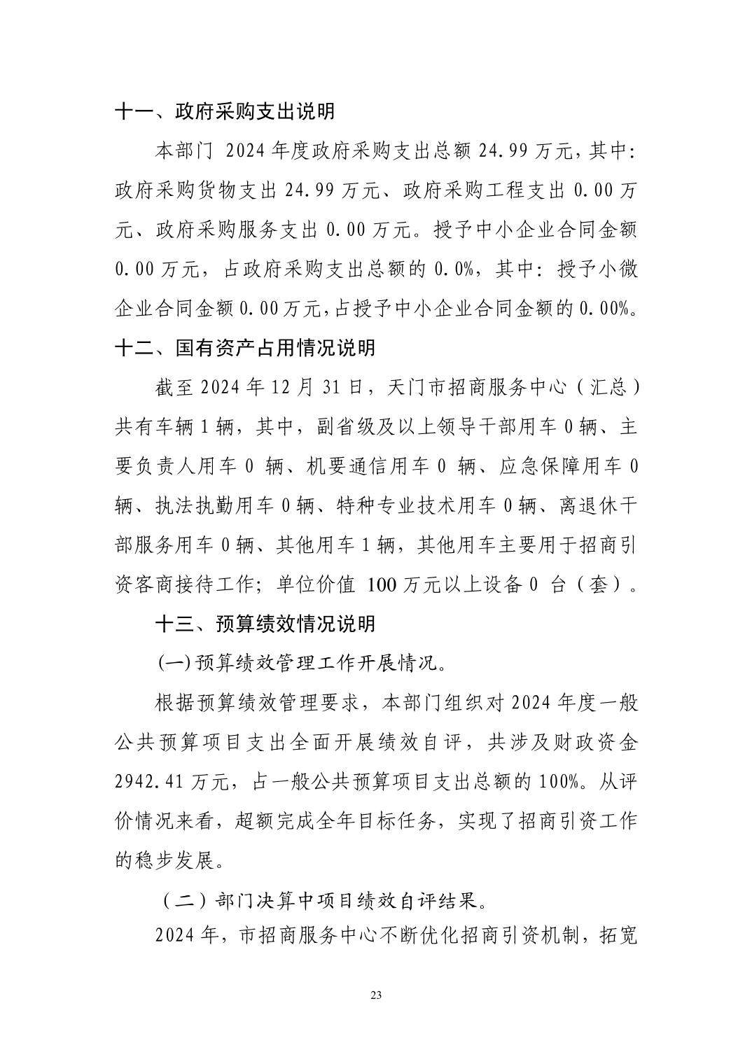 天门市招商服务中心2024年部门决算
