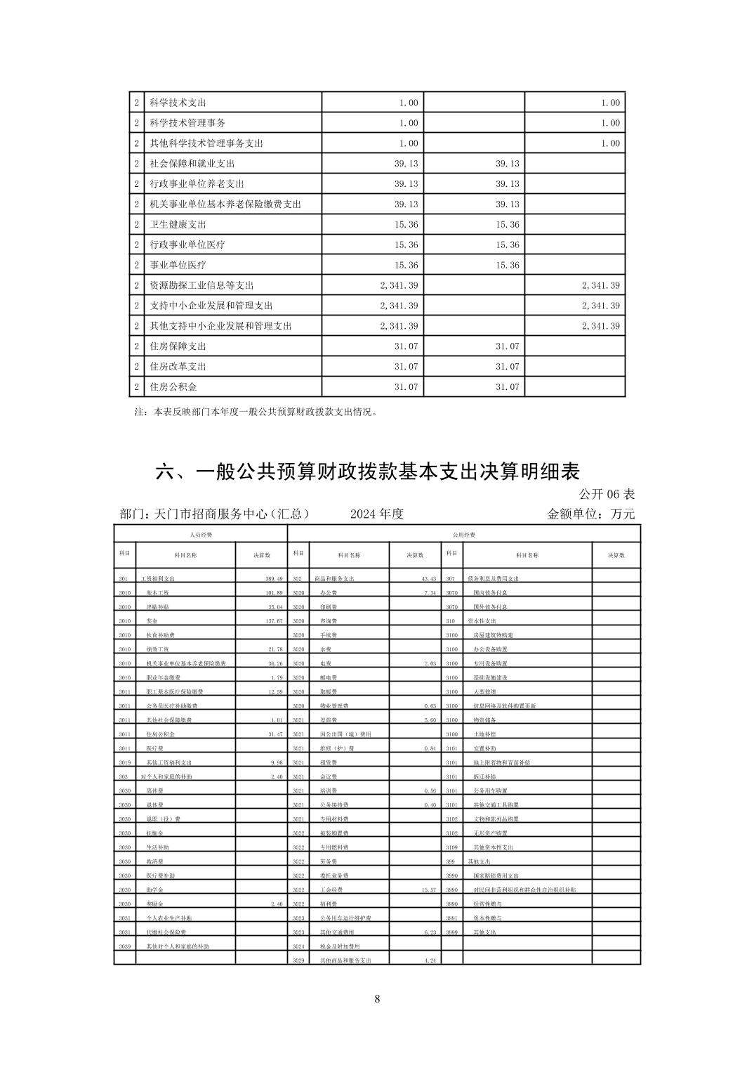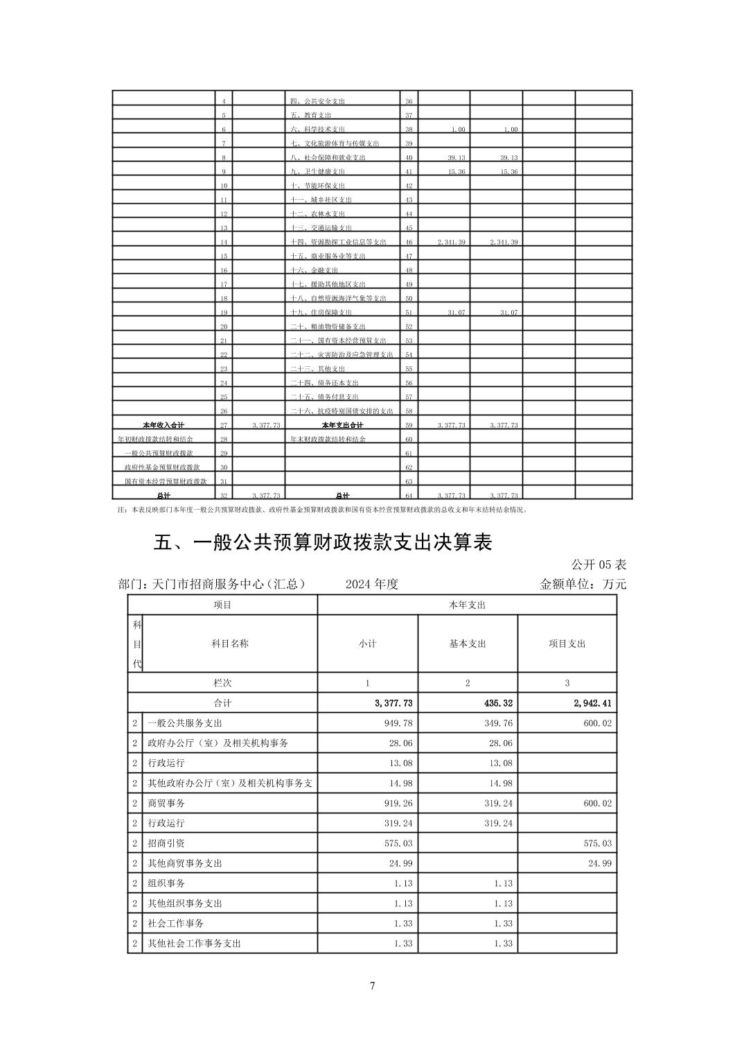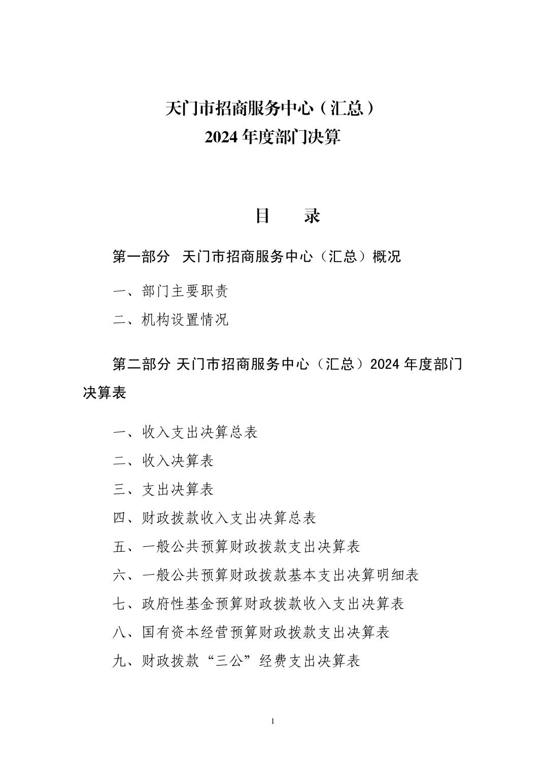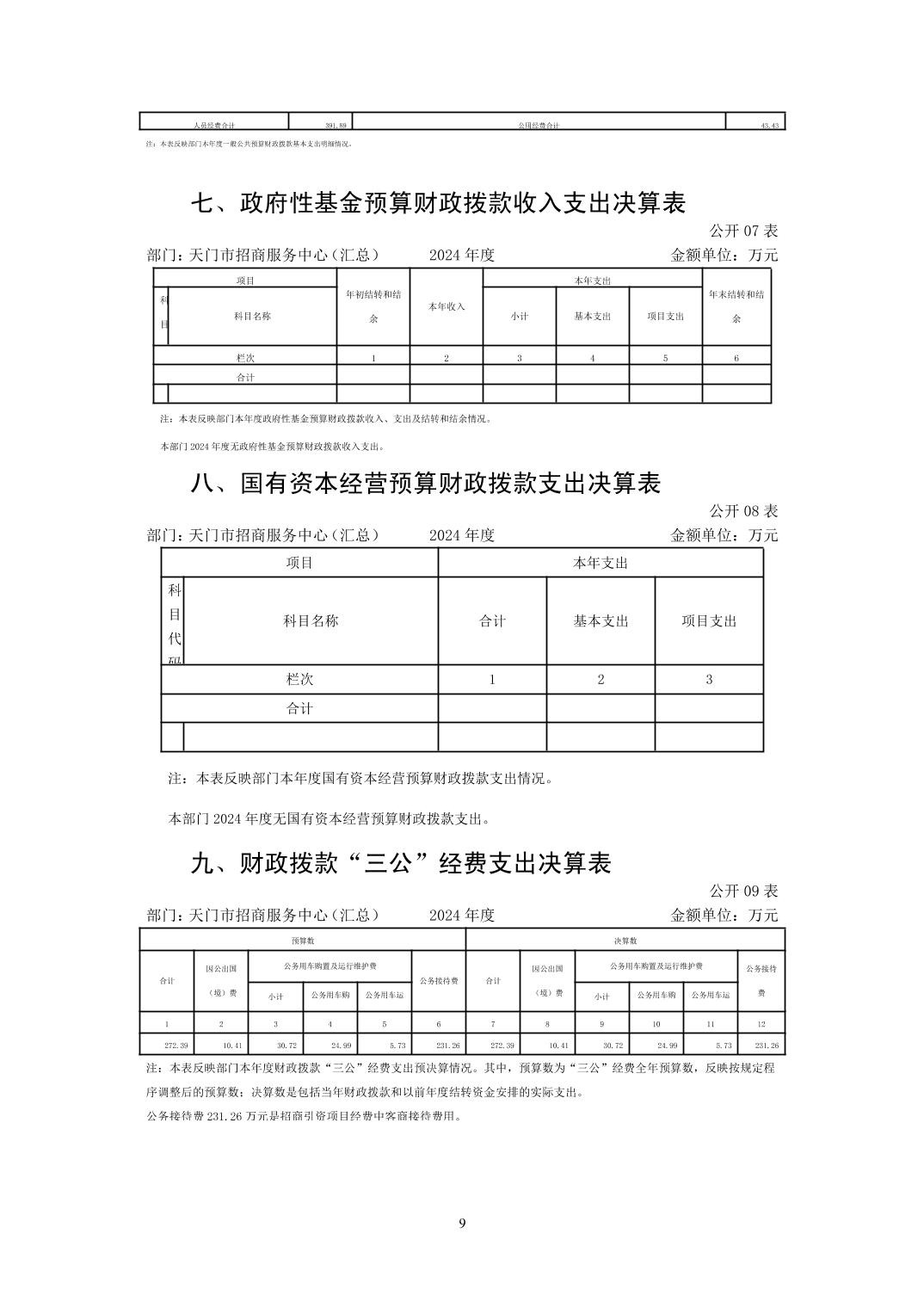 天门市招商服务中心2024年部门决算