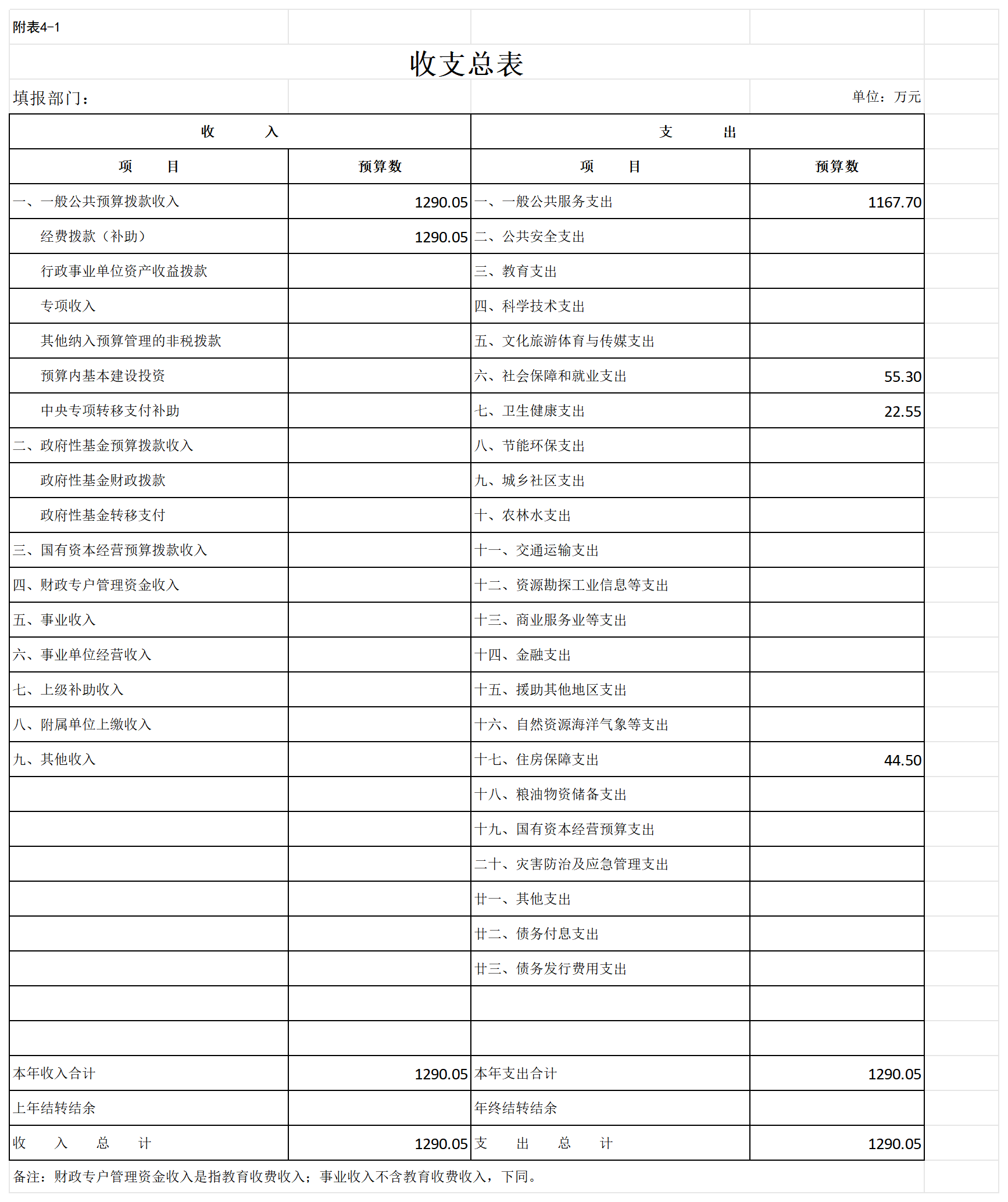 一、部门收支总表