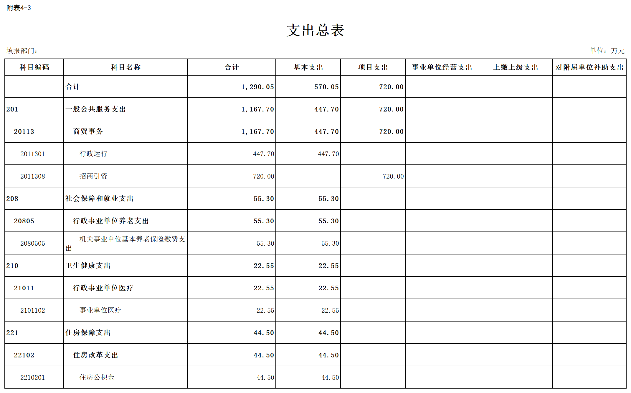 三、部门支出总表