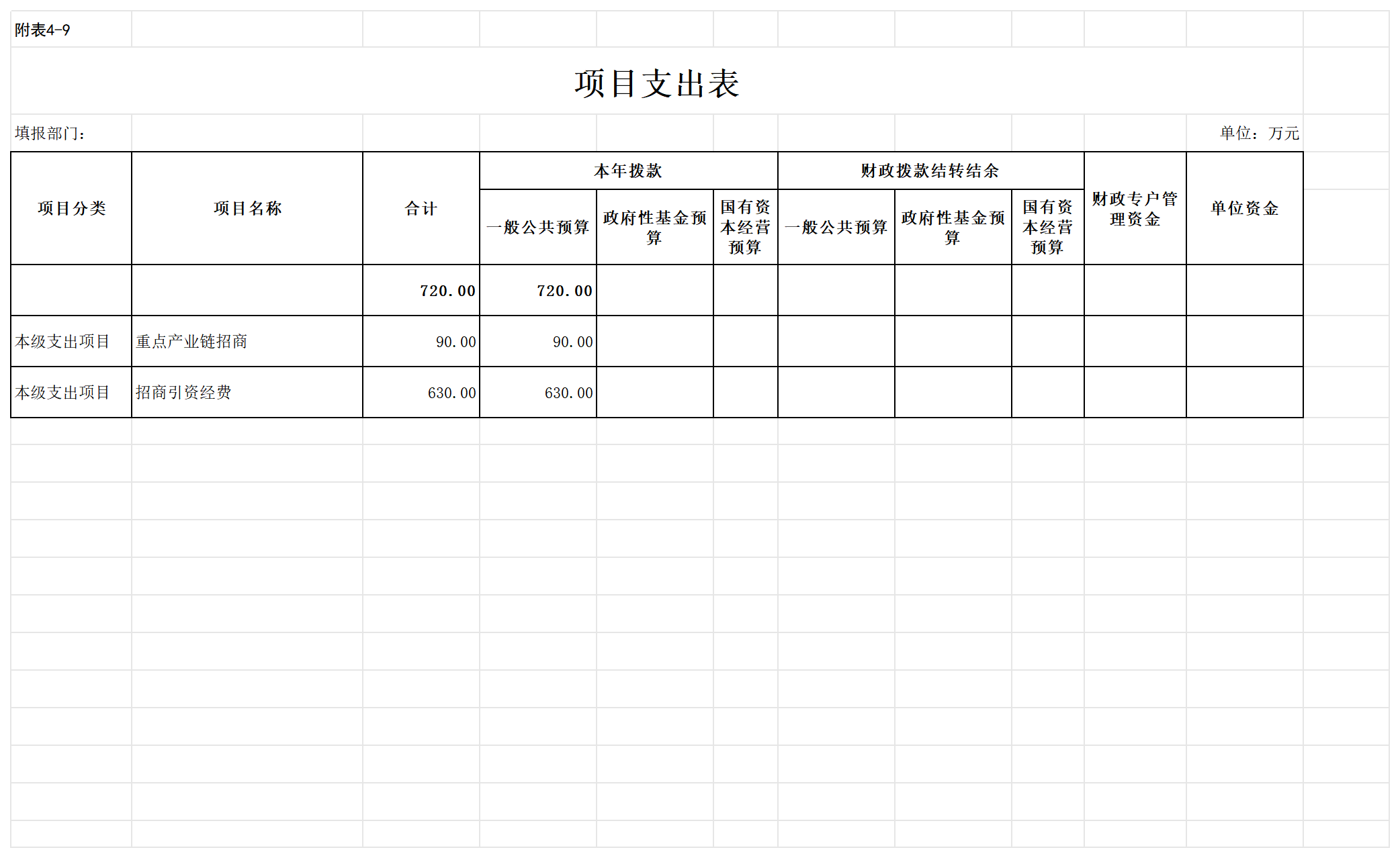 九、项目支出表