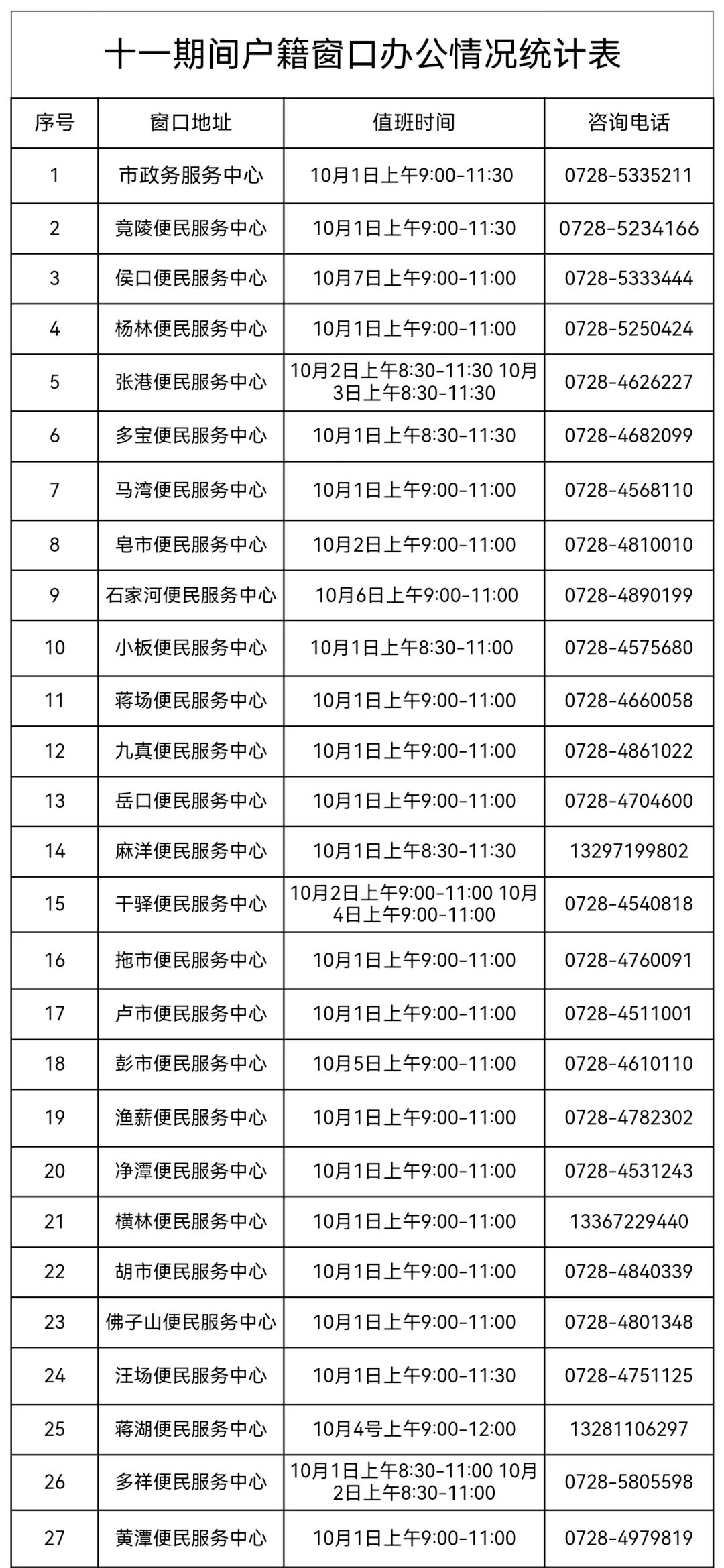 1.国庆放假期间,若您有急办件,请拨打预约电话:0728-5238810。