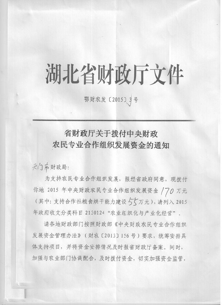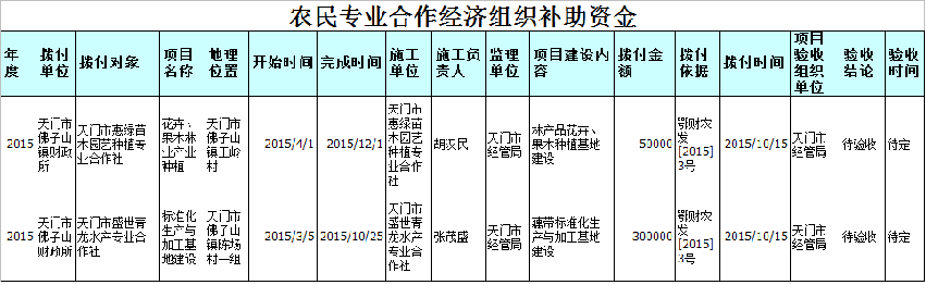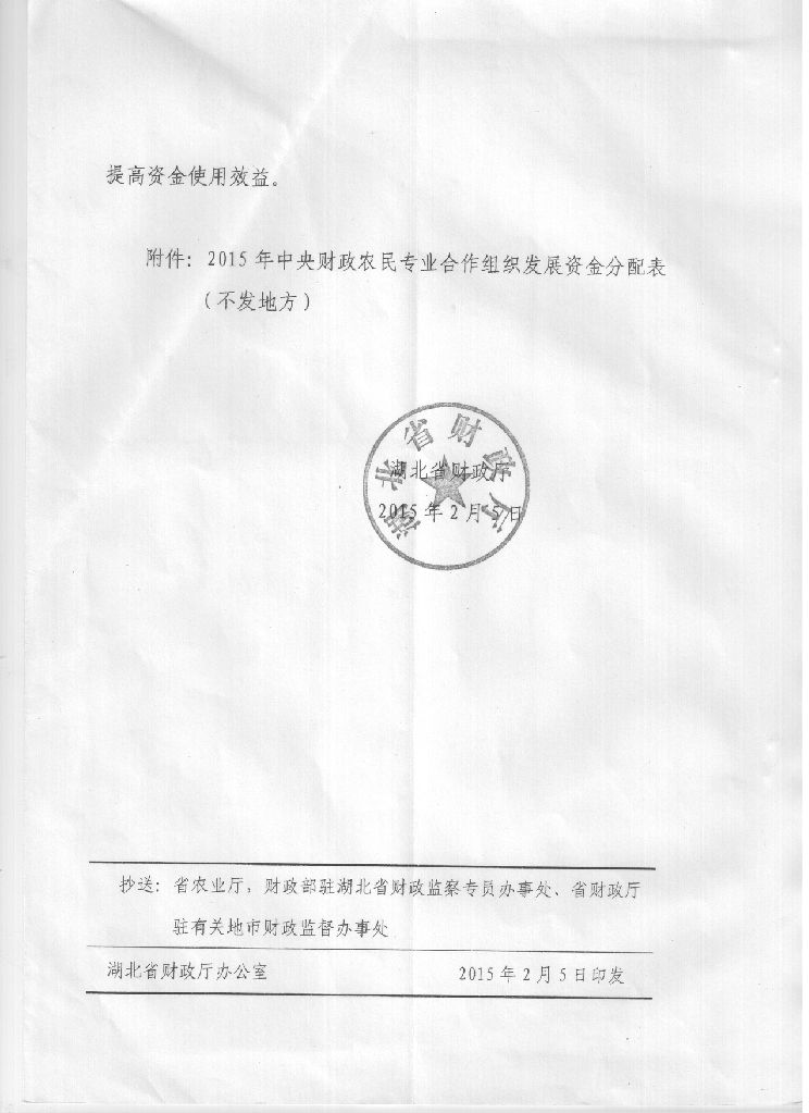 佛子山2015年农民专业合作经济组织补助资金