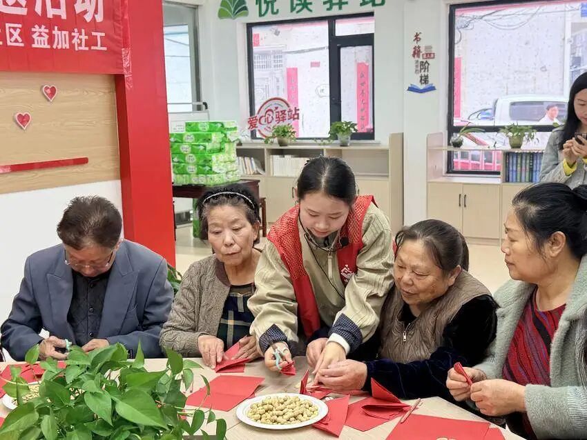 活动现场,充满了欢声笑语。在社工和志愿者的耐心指导下,老年朋友们兴致勃勃地拿起剪刀和红纸,巧手翻飞,细心裁剪。不一会儿,一幅幅寓意吉祥、栩栩如生的剪纸作品便跃然手中,有象征丰收的瓜果,有寓意福寿的图案,现场气氛热烈而温馨。这场活动不仅让老人们体验了传统剪纸艺术的魅力,锻炼了手眼协调能力,更为他们搭建了一个交流互动、愉悦身心的平台,让他们的精神世界更加丰盈。