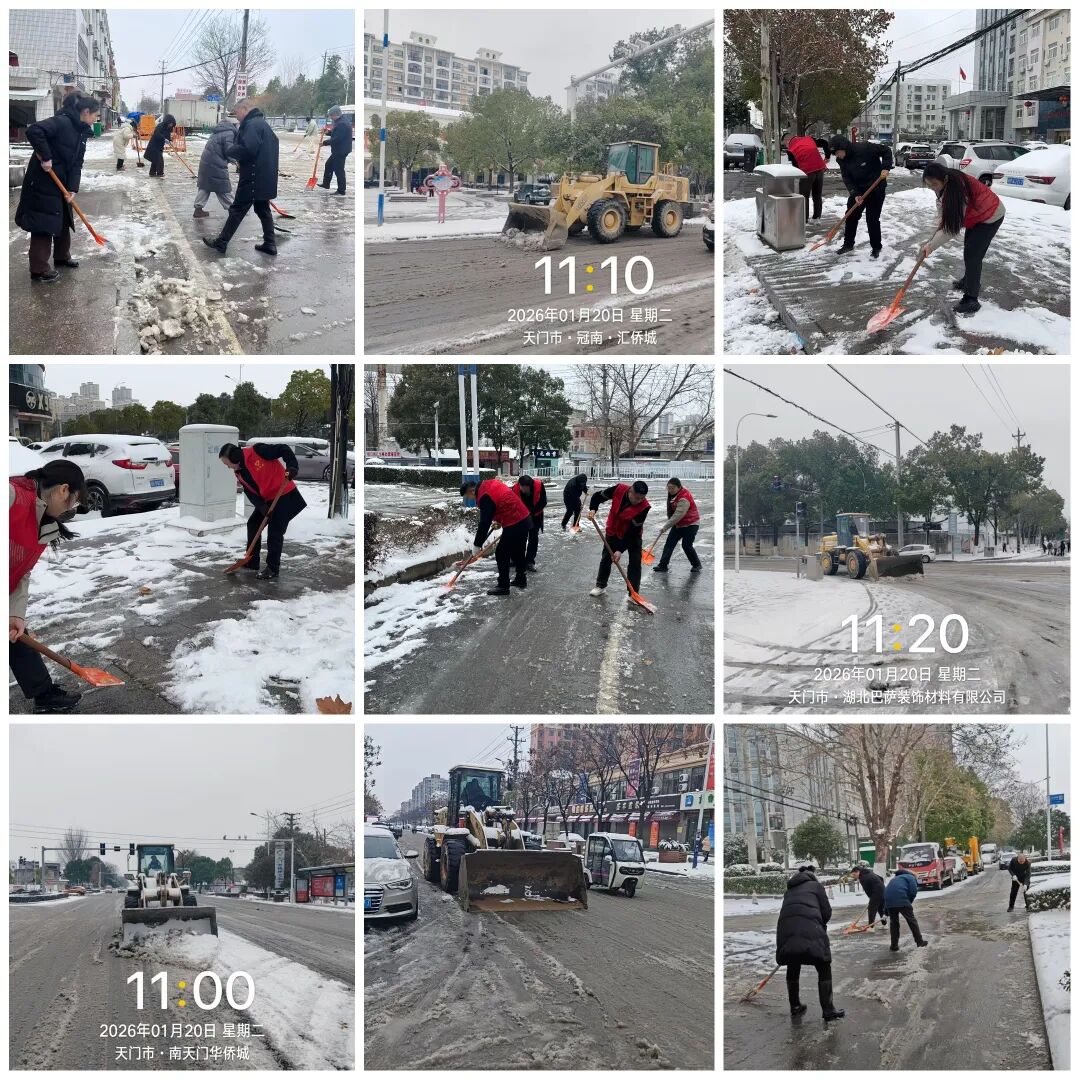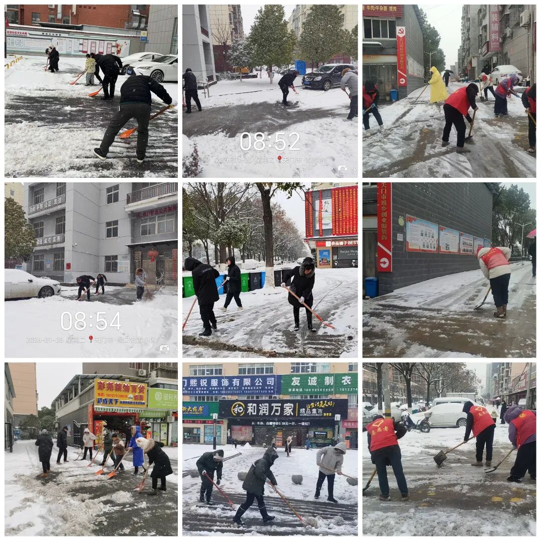 为积极应对降温降雪天气,减少道路积雪给群众出行带来的不便,1月20日,侯口街道以雪为令,迅速组织街道干部、社区干部、党员、志愿者开展除雪作业,为广大群众营造安全、有序、畅通的出行环境。