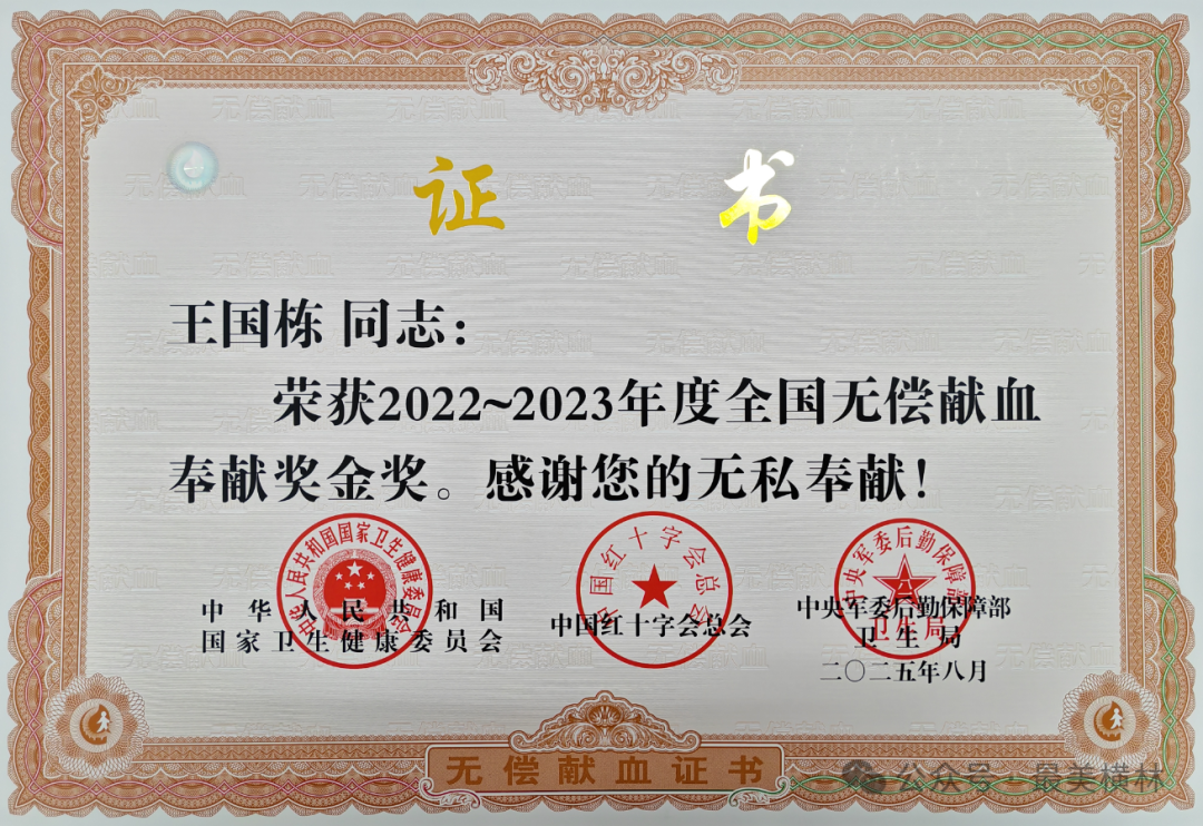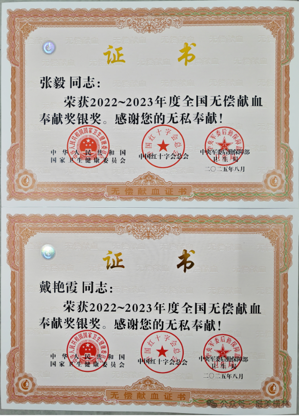 近日,2022-2023 年度全国无偿献血表彰名单正式公布,我镇 14 名无偿献血者荣获全国无偿献血奉献奖,以长期坚守的无私奉献,为我镇精神文明建设再添亮色。