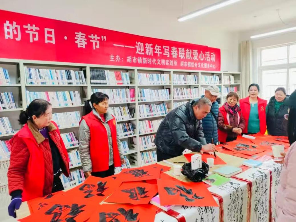 年味渐浓时,祝福暖人心。为弘扬中华优秀传统文化,营造欢乐祥和的节日氛围,2月5日,胡市镇文化服务中心、新时代文明实践所在镇文化中心开展“送万福进万家”书法惠民服务活动,以笔墨为桥,将新春祝福与文化温暖送到群众心坎上。