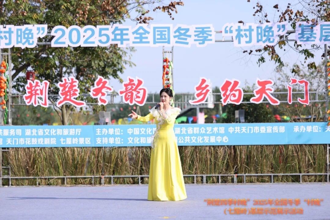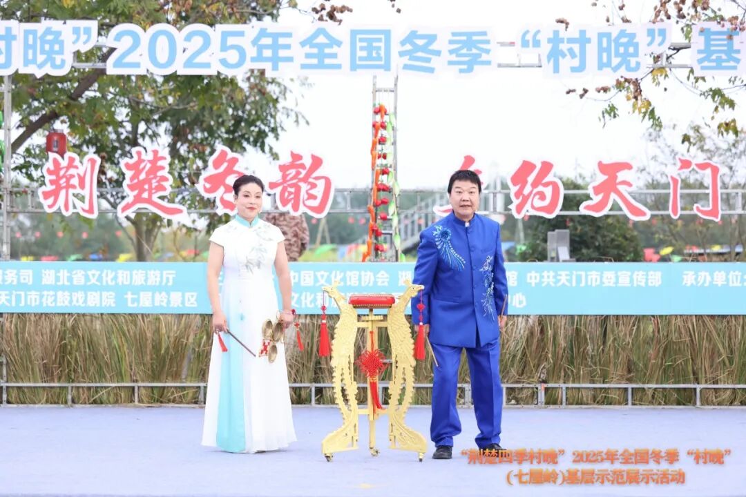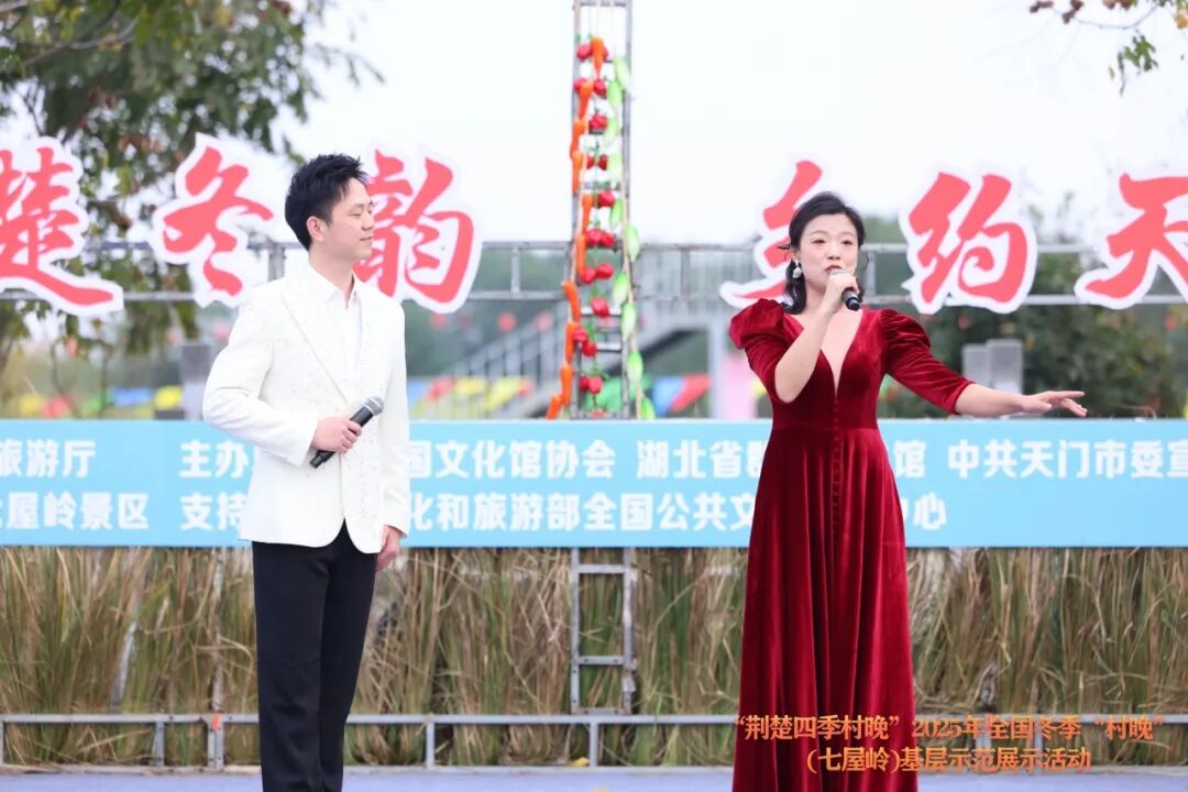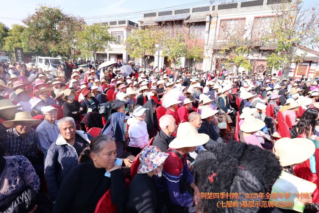 2025年全国冬季“村晚”基层示范展示活动于11月22日在湖北省天门市黄潭镇七屋岭景区圆满落幕。现场群星荟萃、气氛热烈,得到了各级领导的高度重视与亲切关怀。晚会尚未正式开始,现场早已坐满了翘首以盼的村民们,村落中蔓延着浓厚的文化氛围。