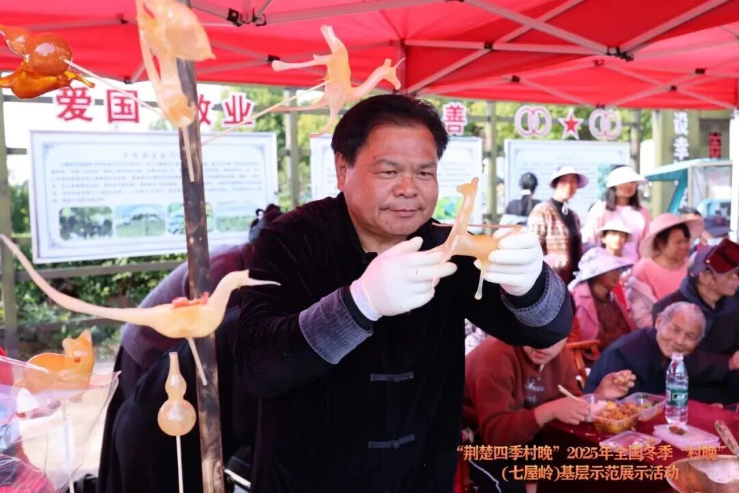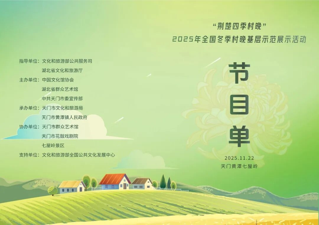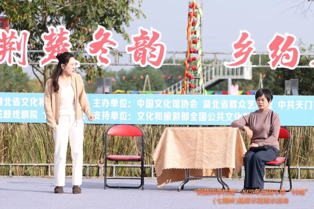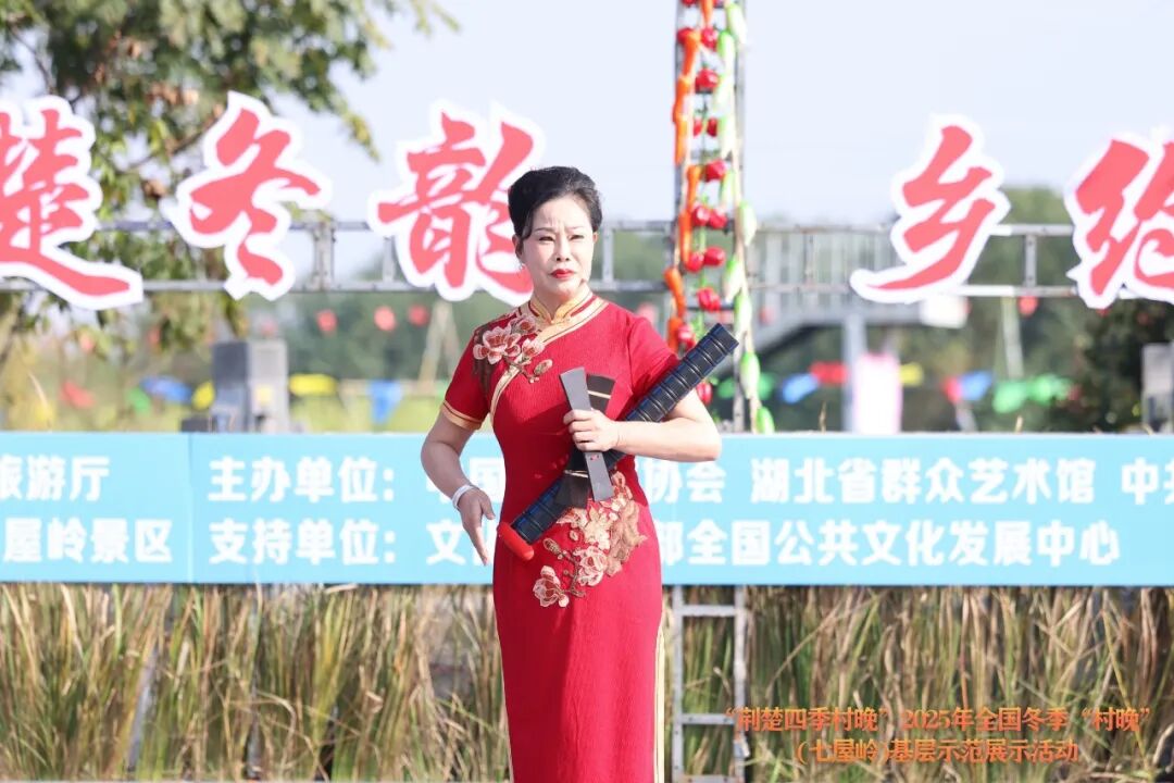 2025年全国冬季“村晚”基层示范展示活动于11月22日在湖北省天门市黄潭镇七屋岭景区圆满落幕。现场群星荟萃、气氛热烈,得到了各级领导的高度重视与亲切关怀。晚会尚未正式开始,现场早已坐满了翘首以盼的村民们,村落中蔓延着浓厚的文化氛围。