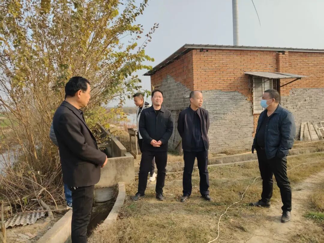 12月9日,党委书记许俊波陪同市移民局一行对东升大队泵站设施及田间沟渠清淤进行勘测。